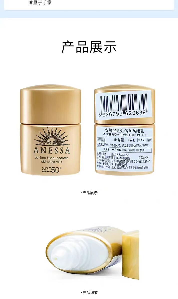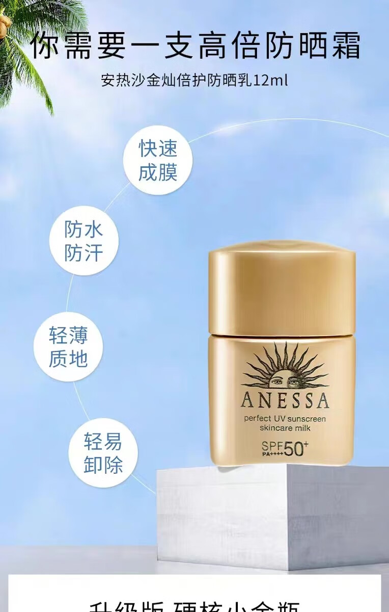 【小样】安热沙金灿倍护防晒乳12ml/102210 轻薄柔润长效守护正品小样