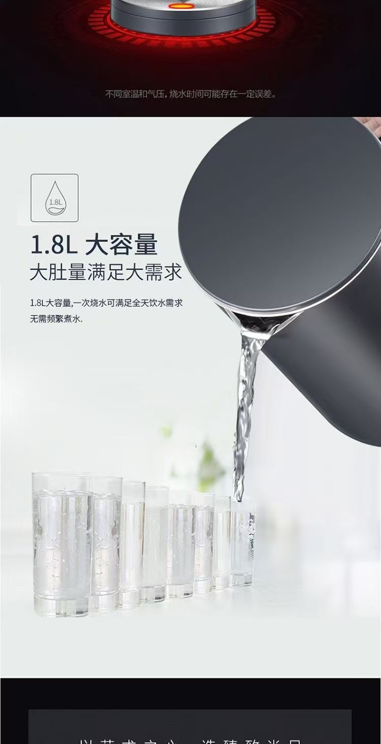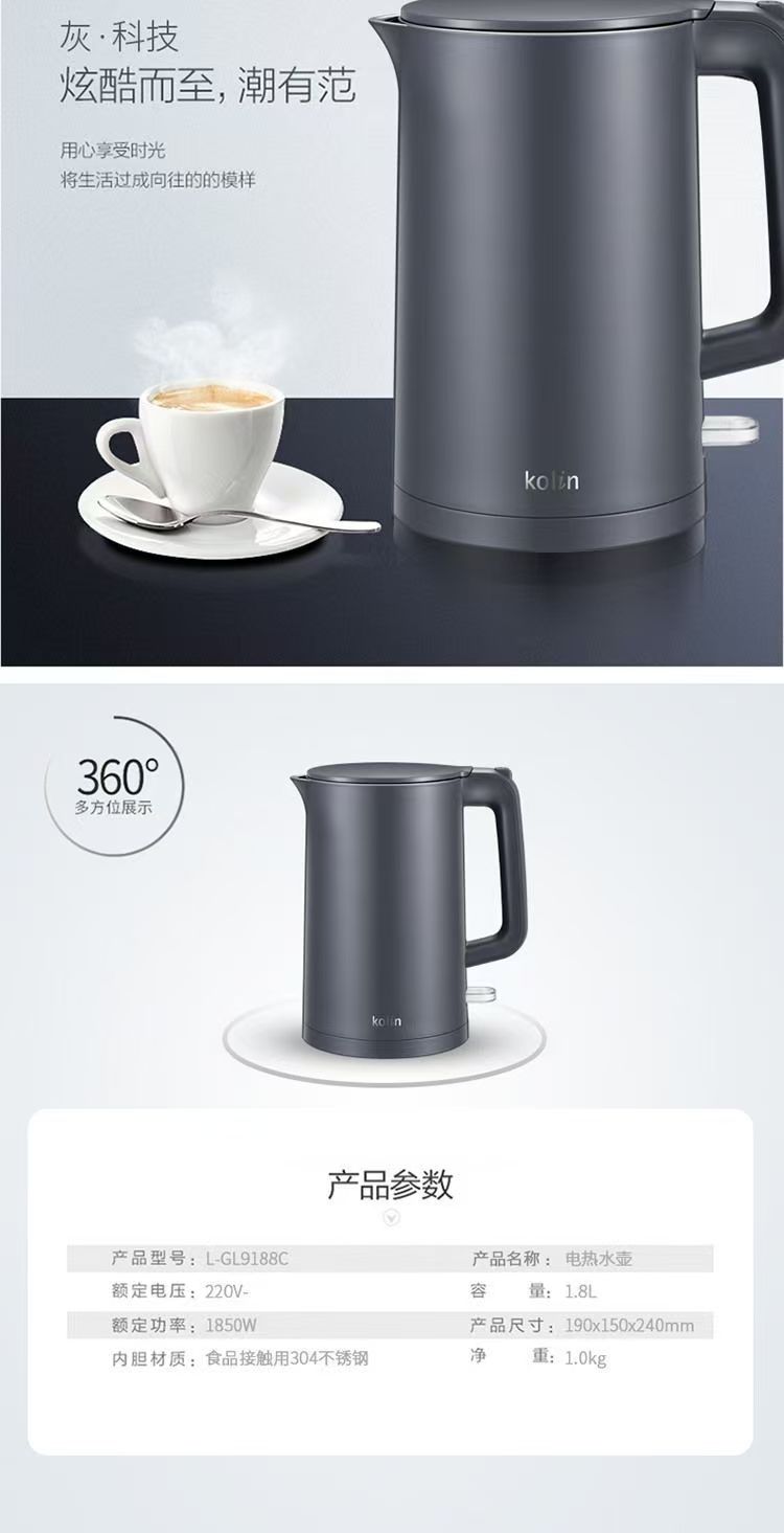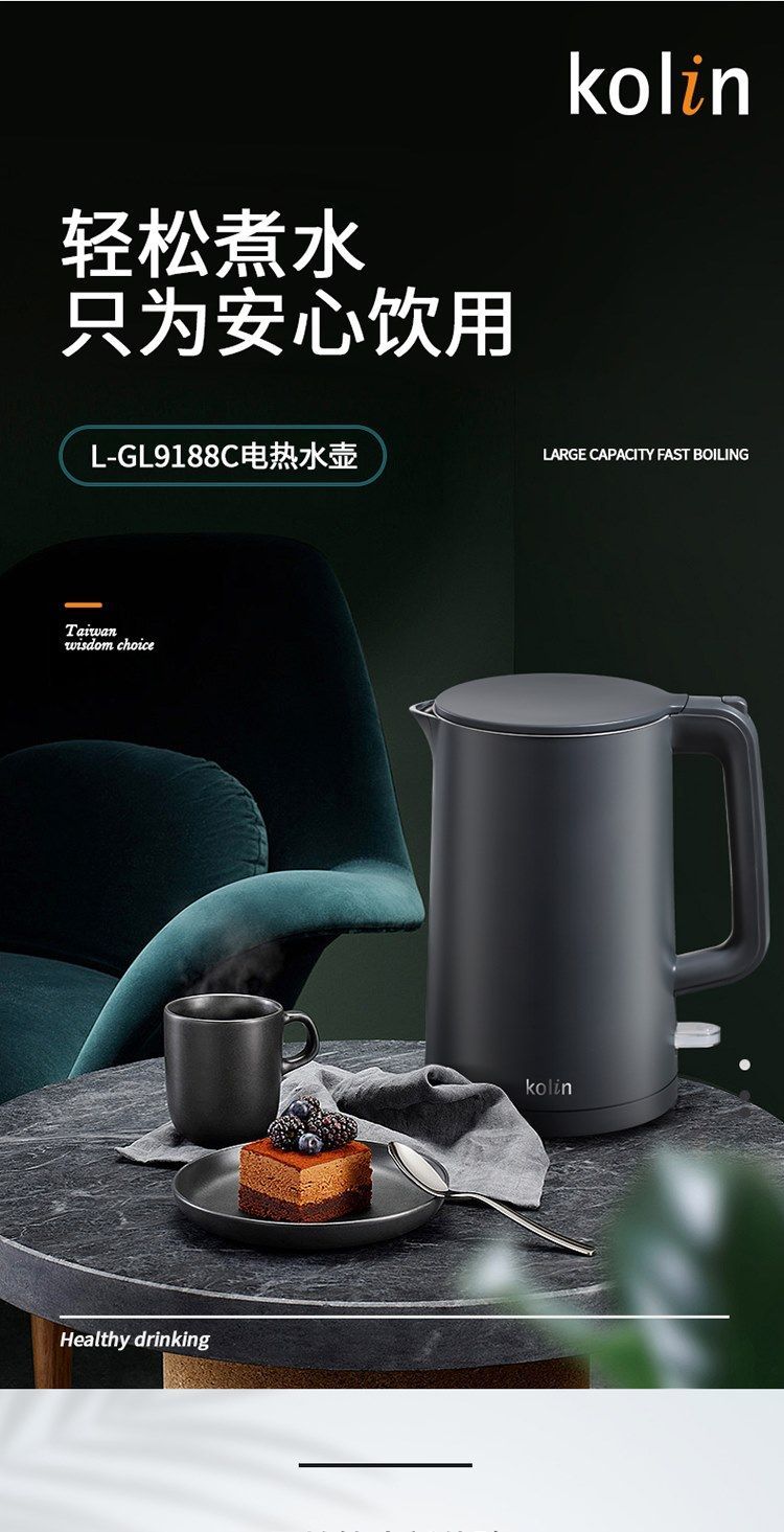 歌林黑金刚电热水壶自动断电智能一体正品电水壶1.8L大容量