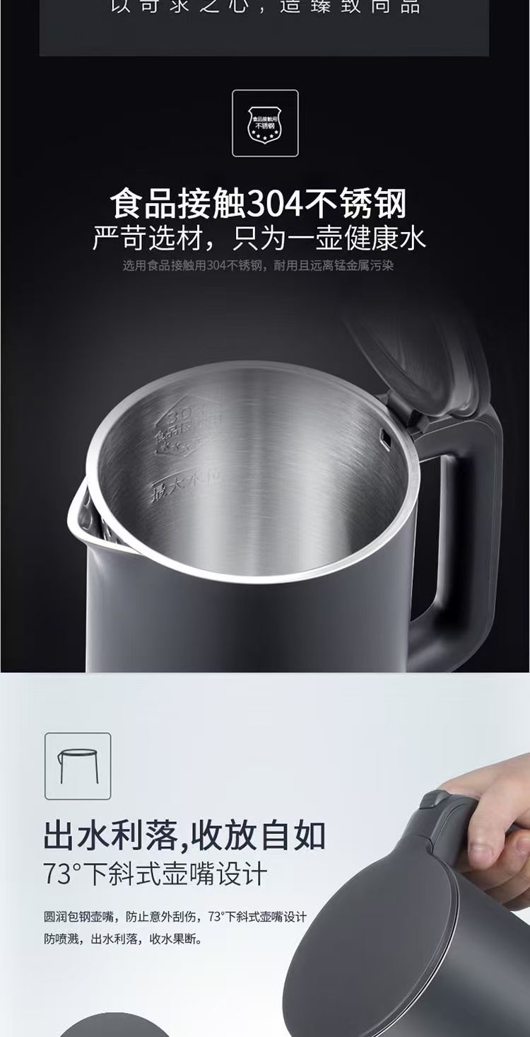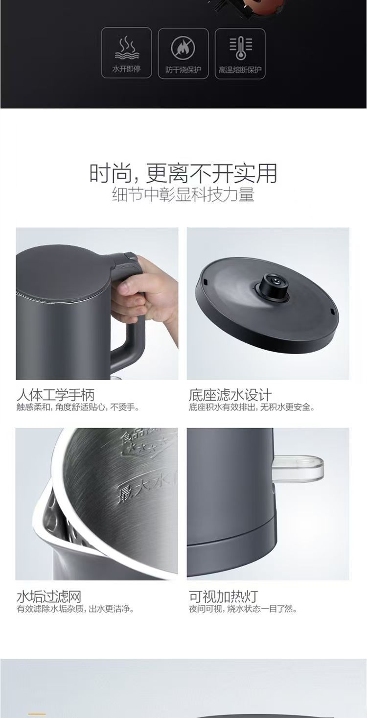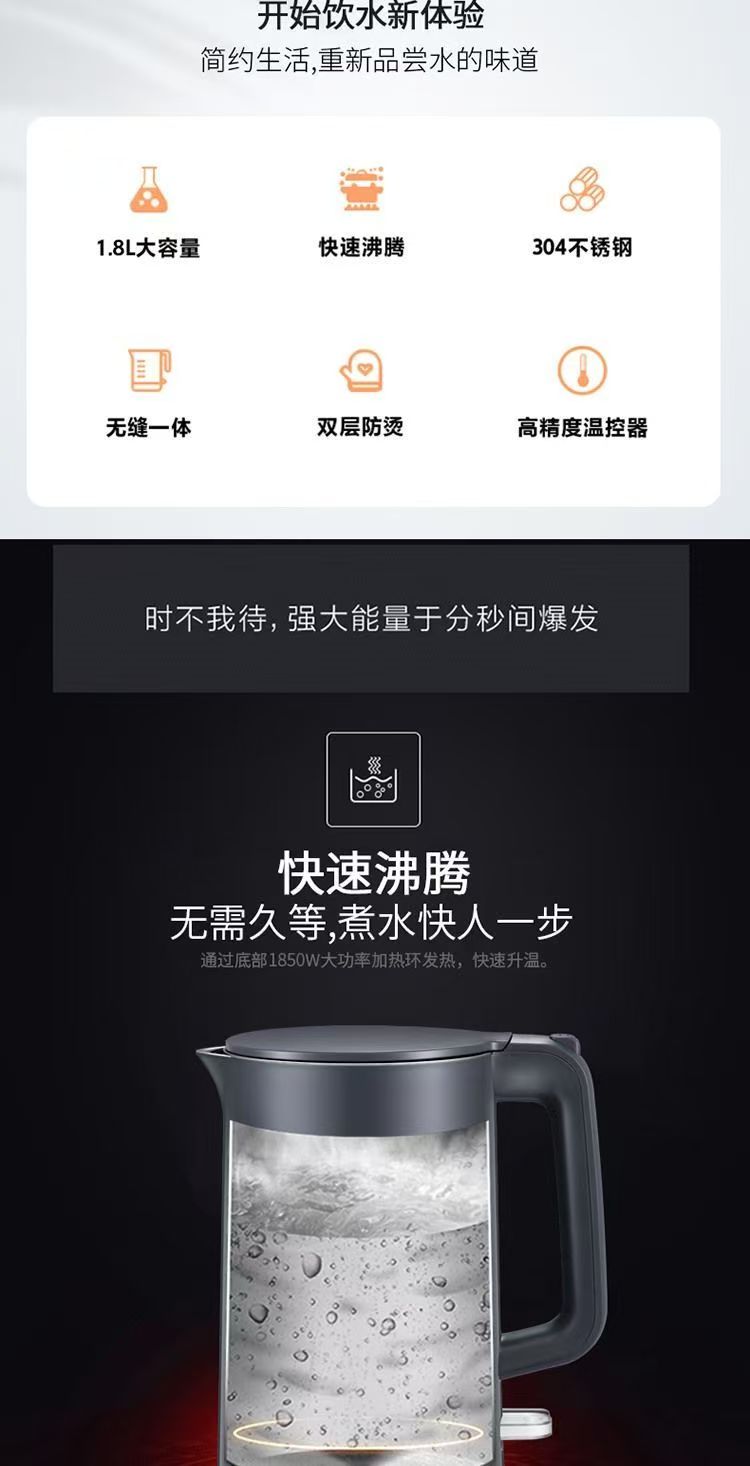 歌林黑金刚电热水壶自动断电智能一体正品电水壶1.8L大容量