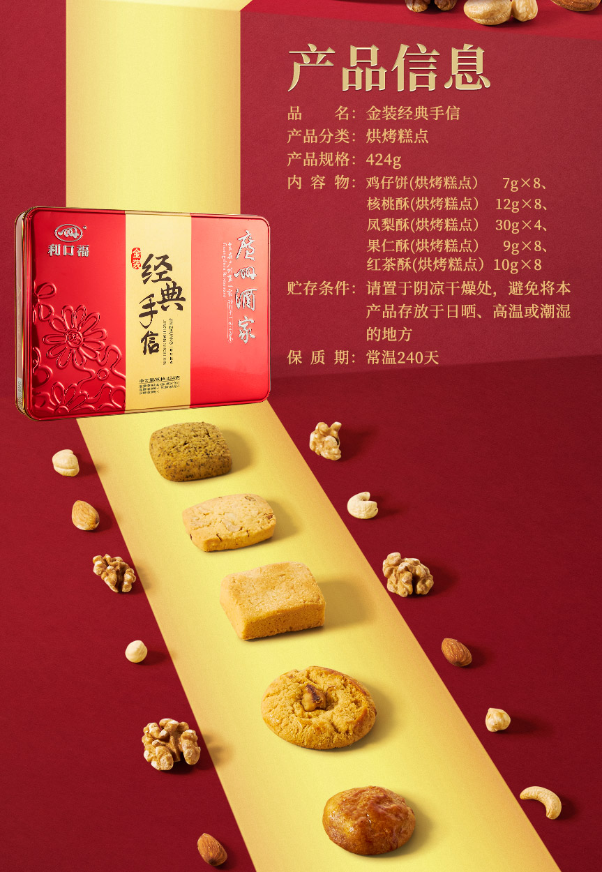 广州酒家 金装手信礼盒424g饼干广式曲奇饼干点心节日送礼手信