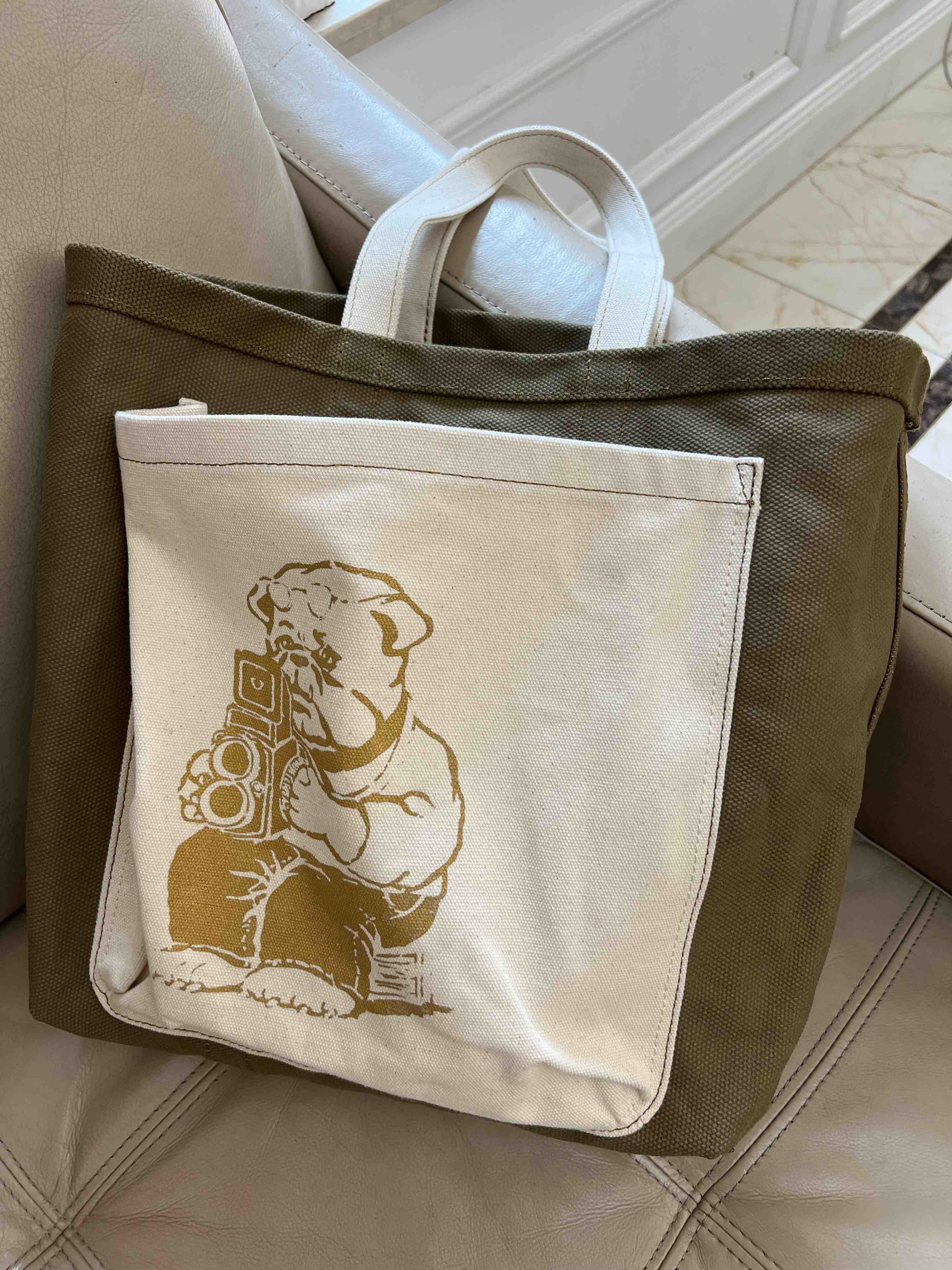 反过来就是相对纯色的帆布包袋。因为帆布是足够厚实紧实密实,所以整体的包型是很立体的,基本没有包托和内里,也是相当有型的。
