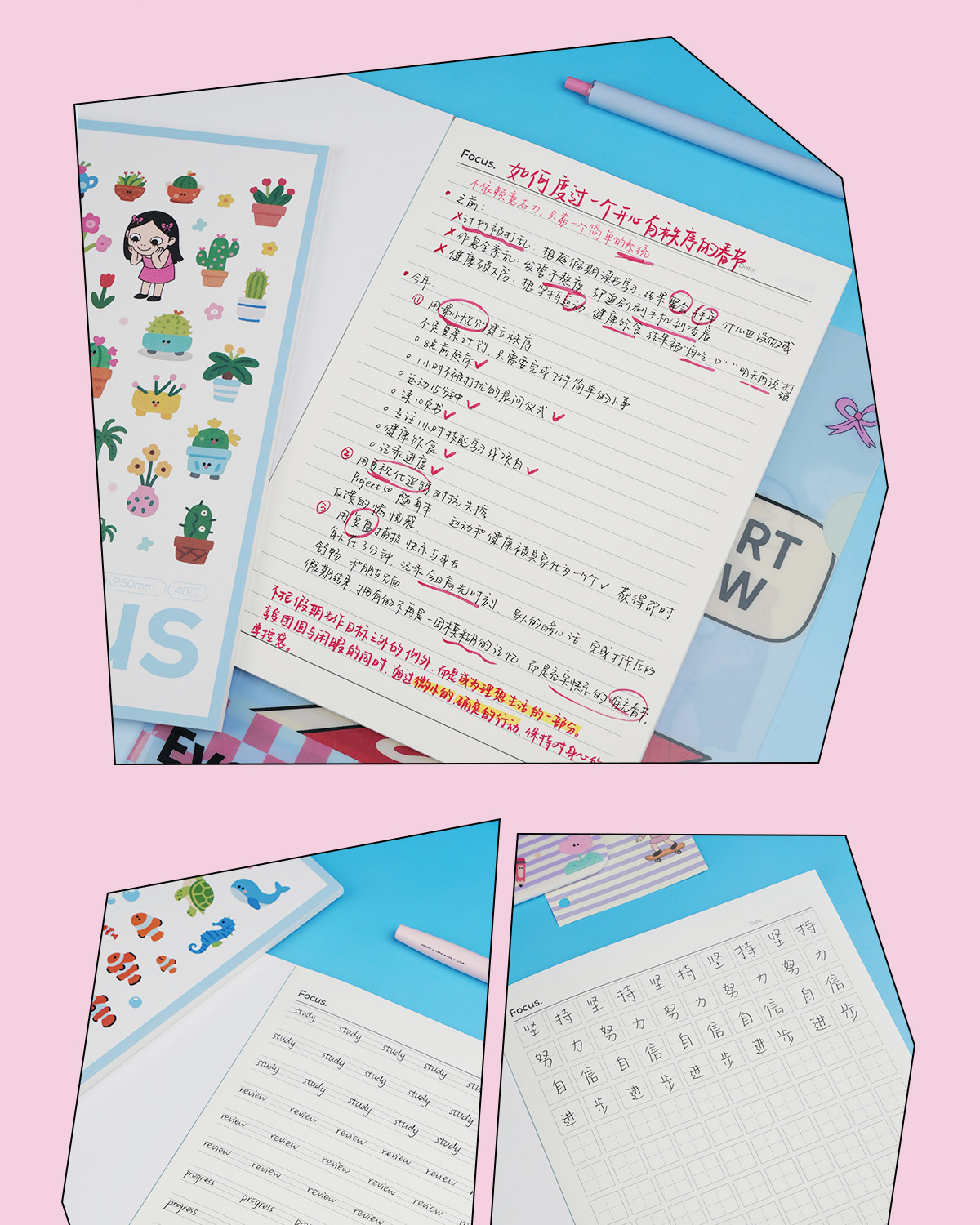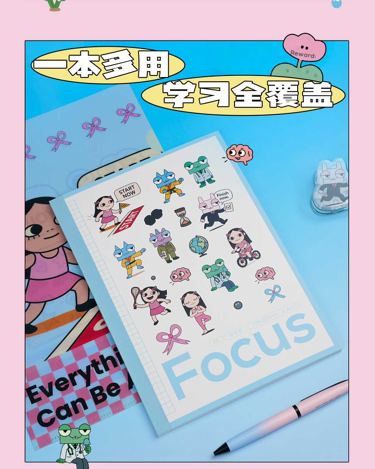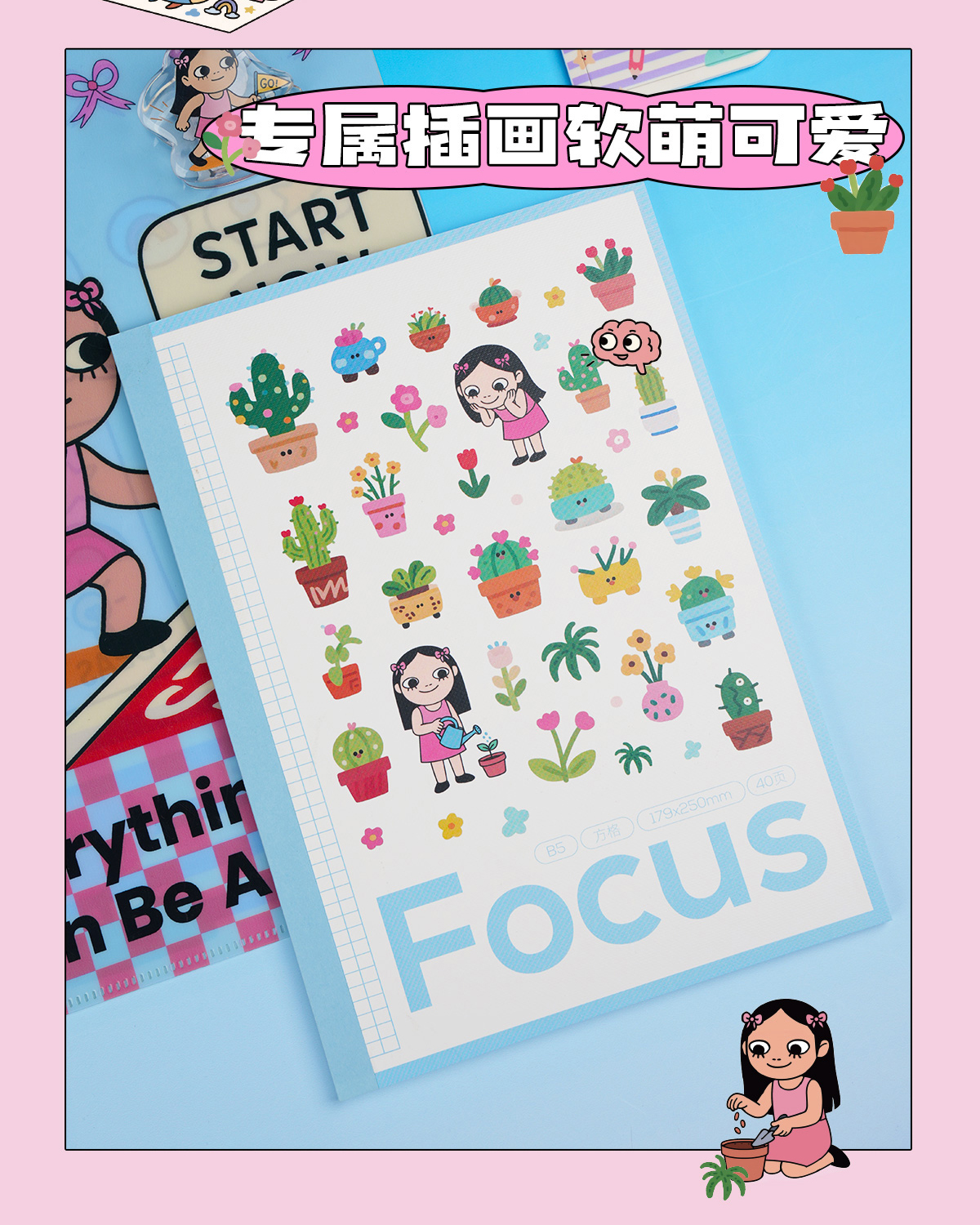趁早rarakiera胶装本可爱卡通B5大号记事本学生作业练习本横线田字格英语本