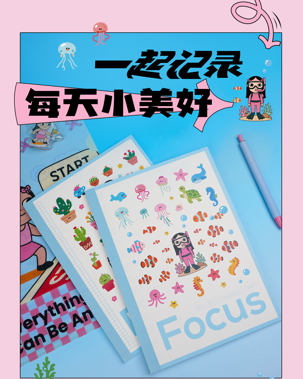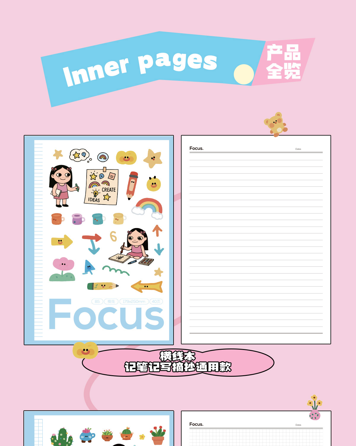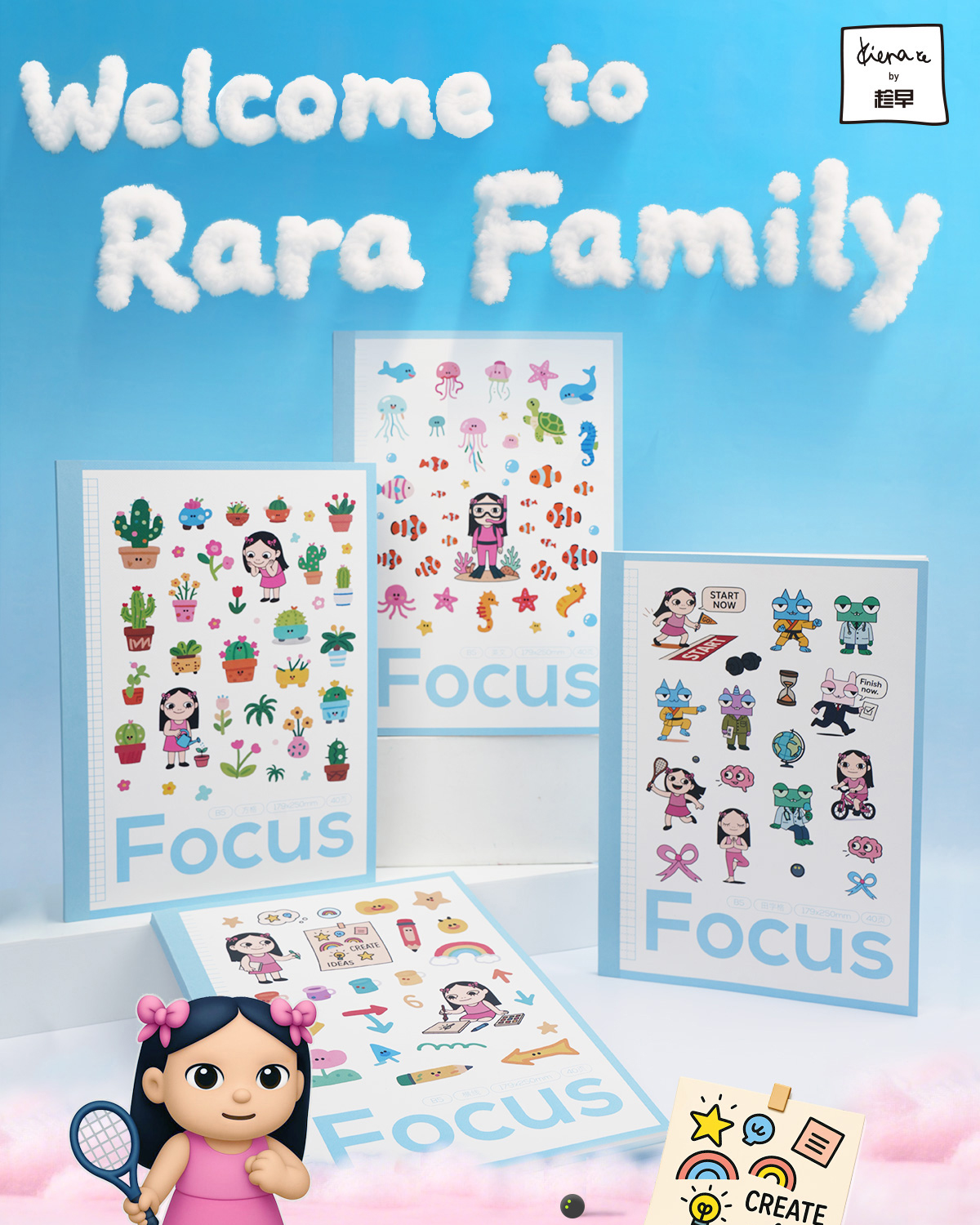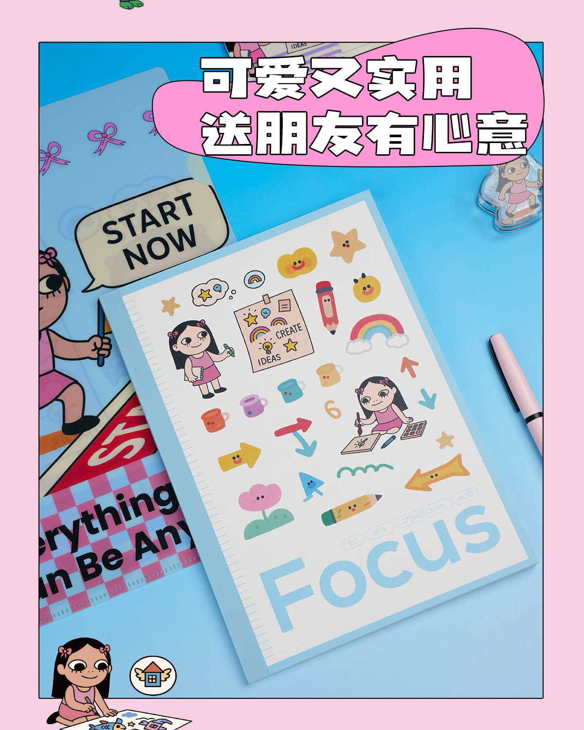趁早rarakiera胶装本可爱卡通B5大号记事本学生作业练习本横线田字格英语本