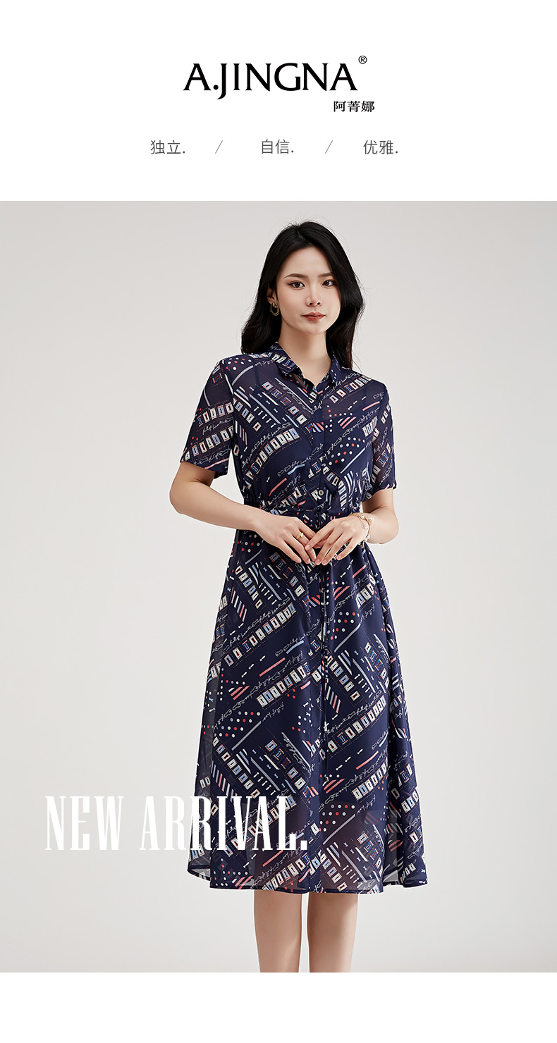 【特价不退换】阿菁娜个性印花时尚通勤收腰连衣裙A26X112102