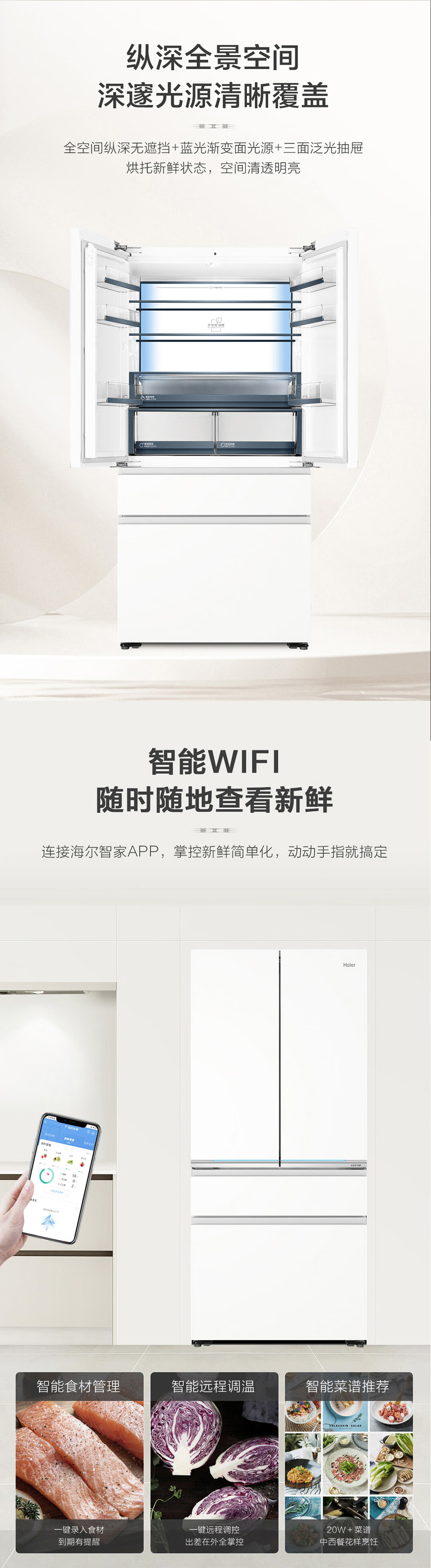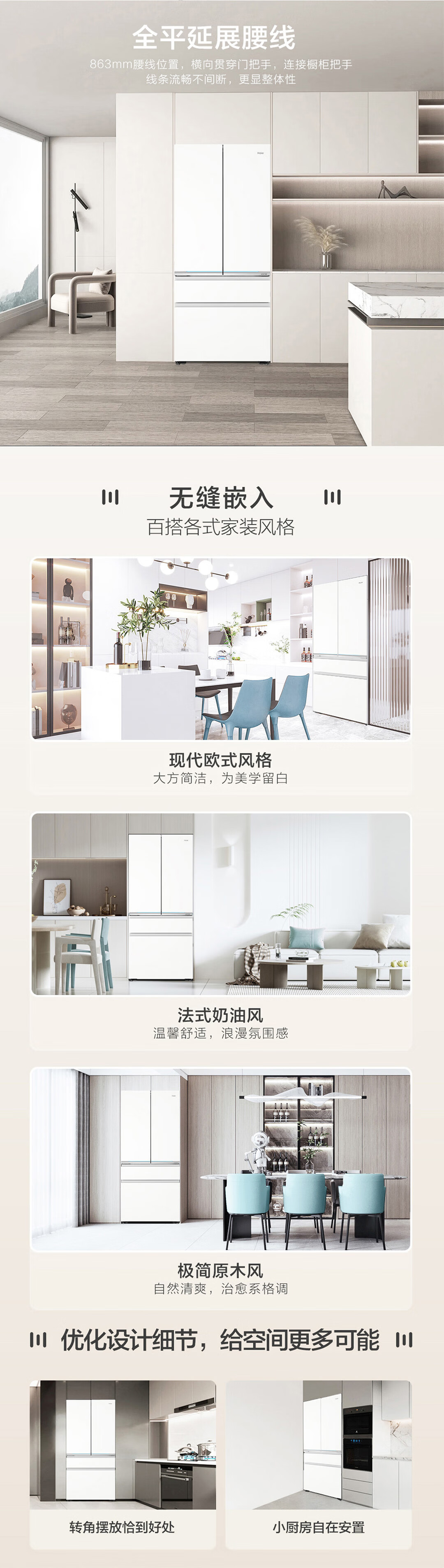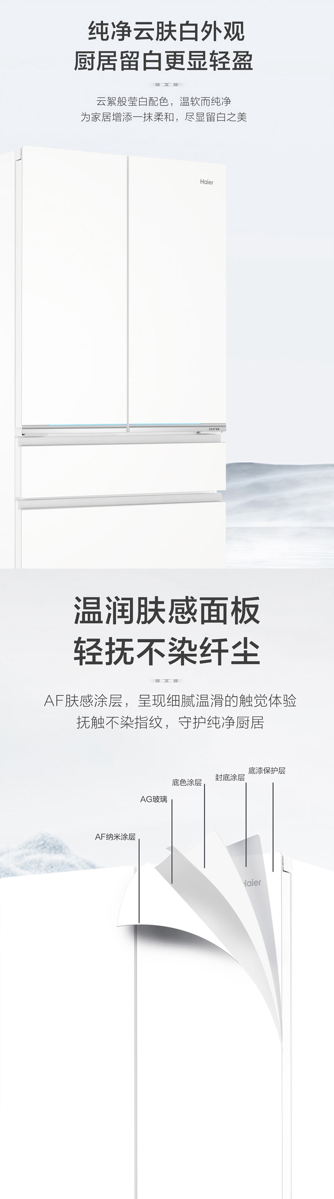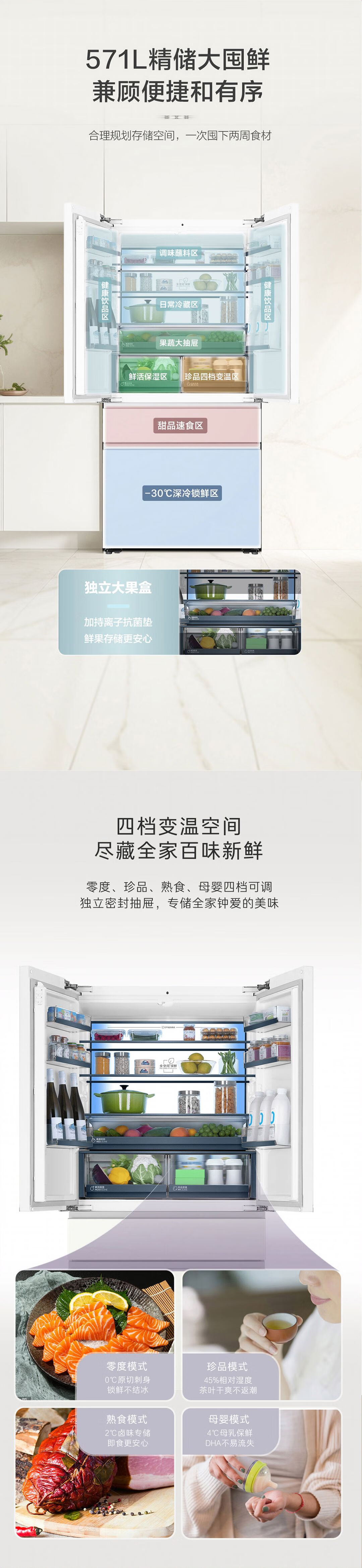 海尔571升全空间保鲜超薄零距离自由嵌入式风冷无霜一级变频多门家用大容量电冰箱 法式四开门 BCD-571WGHFD2BW4U1