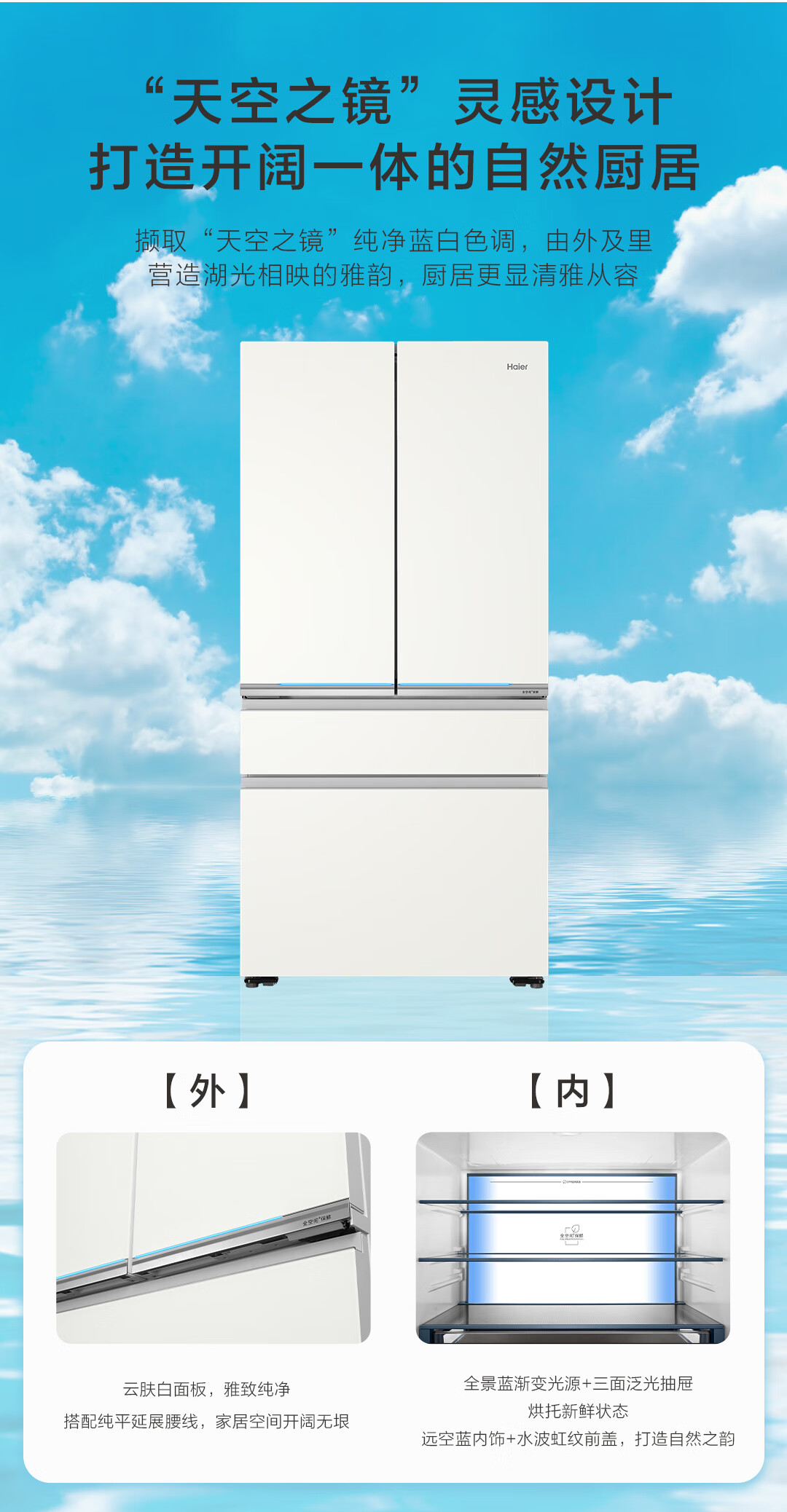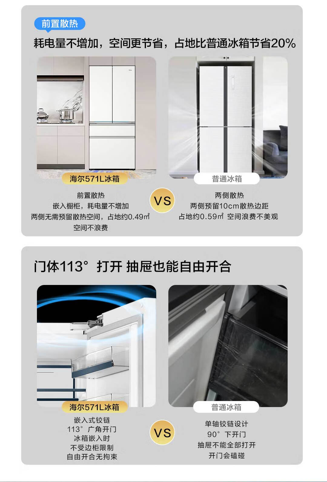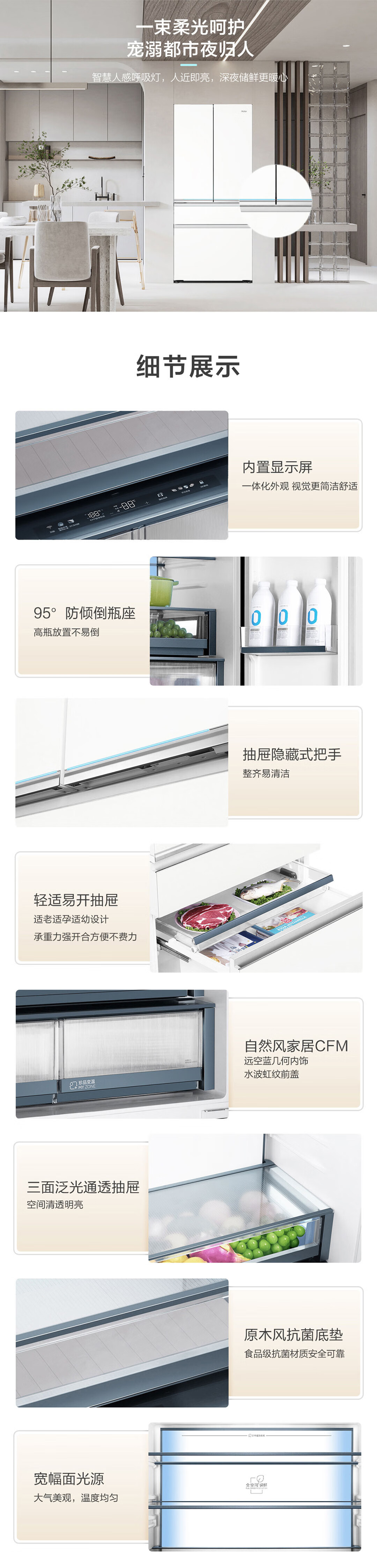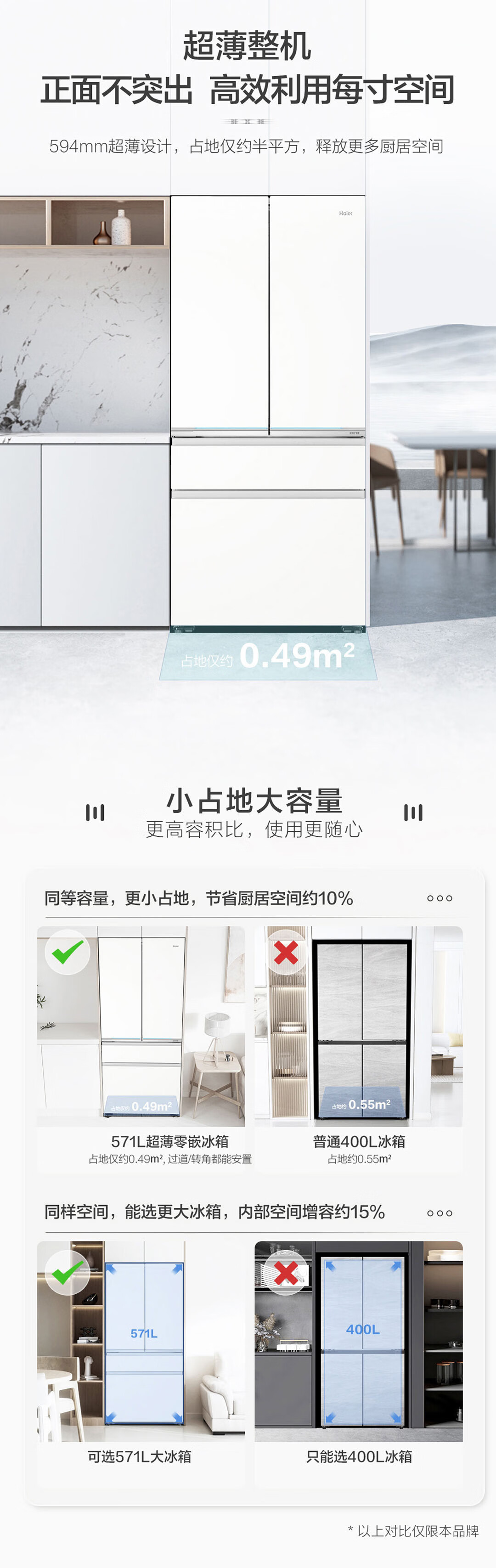 海尔571升全空间保鲜超薄零距离自由嵌入式风冷无霜一级变频多门家用大容量电冰箱 法式四开门 BCD-571WGHFD2BW4U1