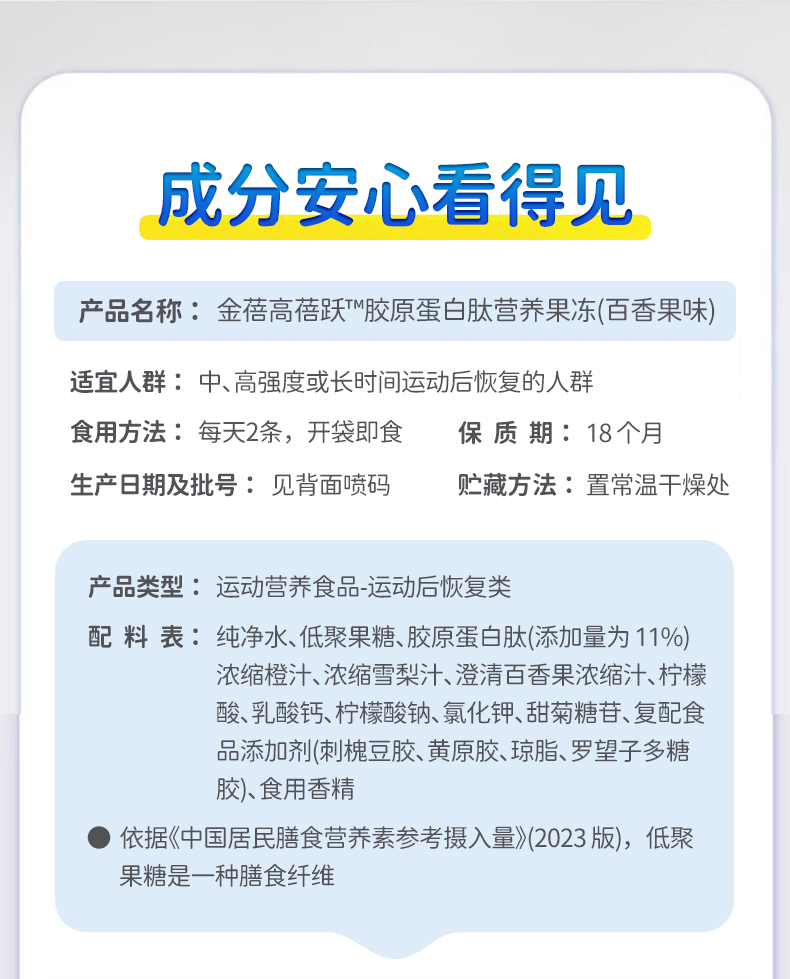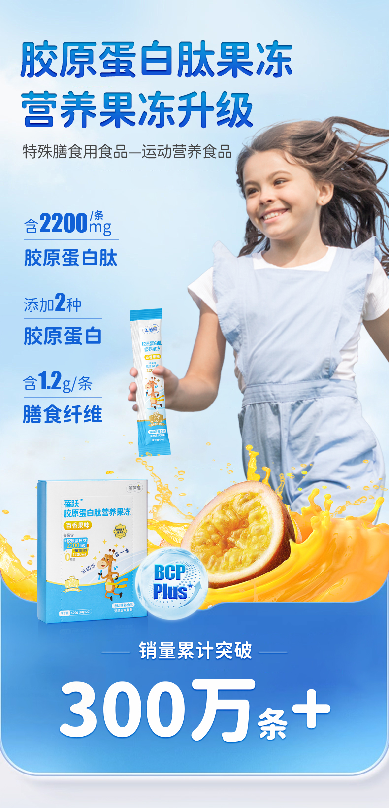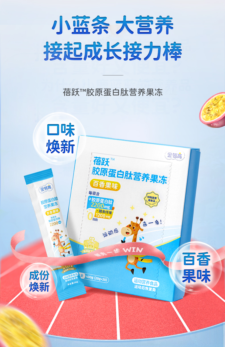【助力长高高】金蓓高 蓓跃胶原蛋白肽营养果冻(百香果味)临期商品!!!