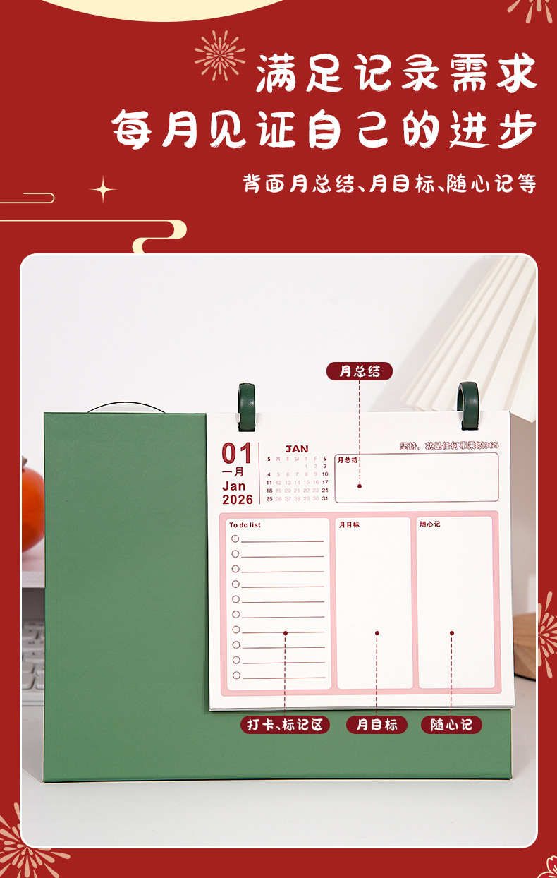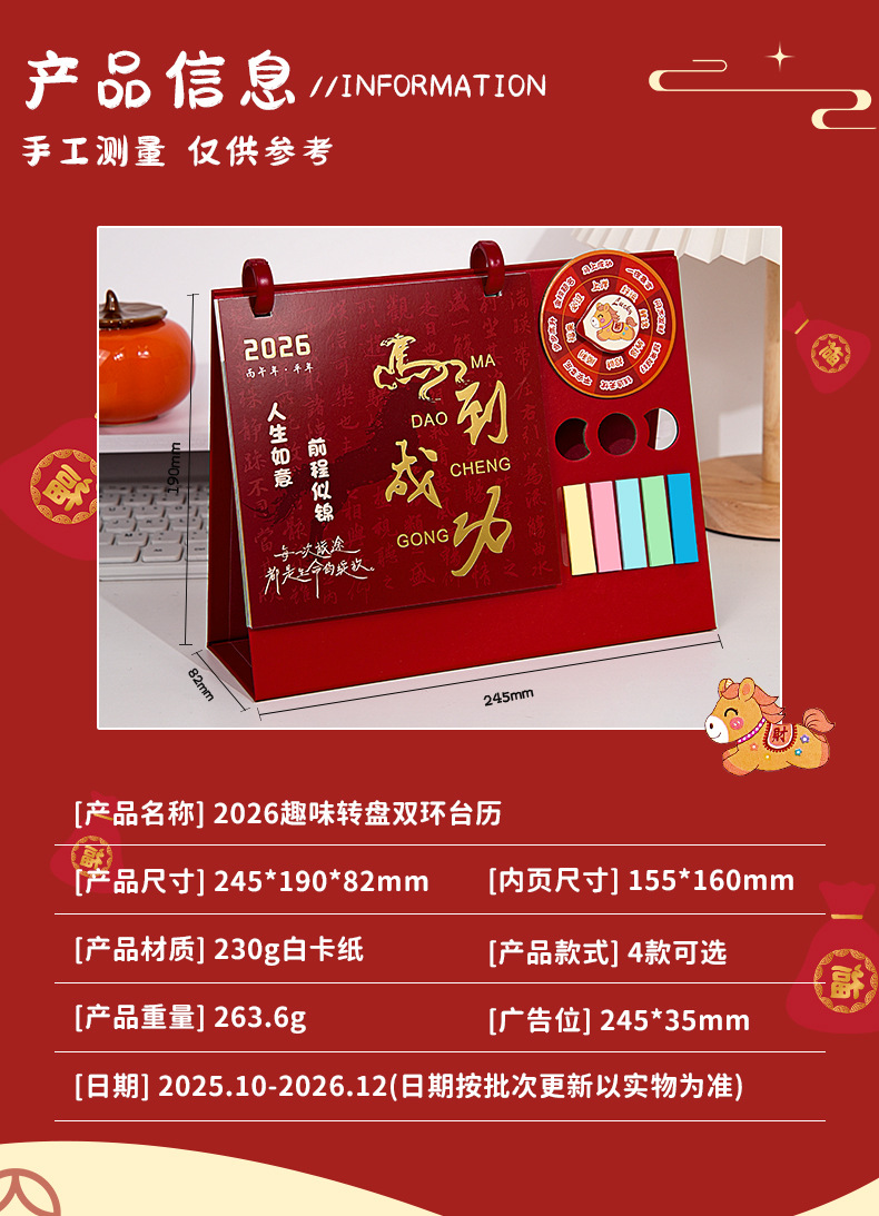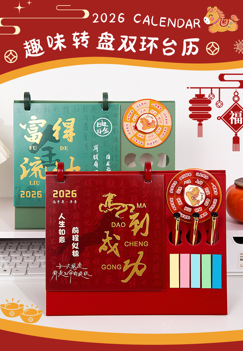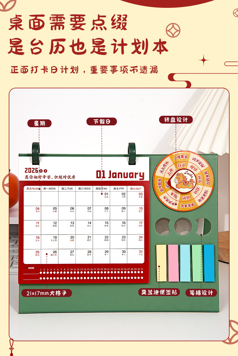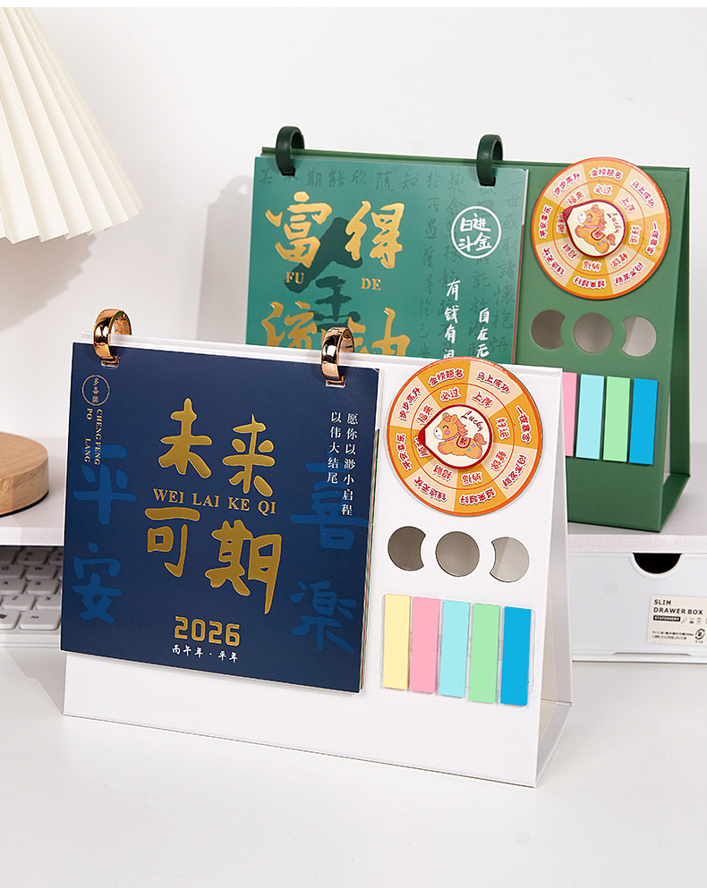 【趣味转盘❗️双环设计】日历台历2026年桌面趣味转盘摆件简约小清新办公便签本月历。ja