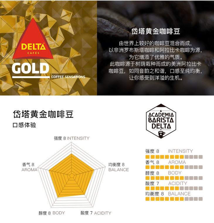 DELTA/岱塔 黄金岱塔 原装进口精选阿拉比卡咖啡豆 中深烘培500g