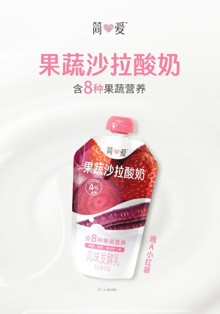 简爱果蔬沙拉酸奶草莓甜菜紫胡萝卜风味发酵乳4%蔗糖120g/袋