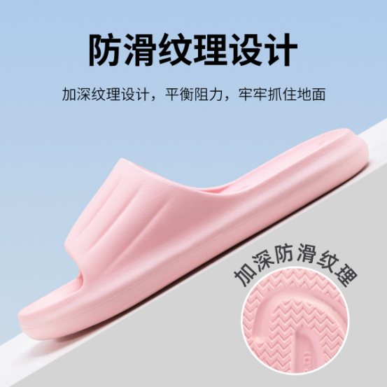▼舒适防滑行走,行走更安心 鞋底采用人体工学设计,贴合脚掌弧度, 行走时能有效分散压力,长时间穿着也不易疲惫。 独特的防滑纹路,抓地力强劲, 无论是湿滑的浴室地面,还是雨后的街道,都能提供稳固支撑! EVA防滑大底,让每一步都走得安心、踏实!