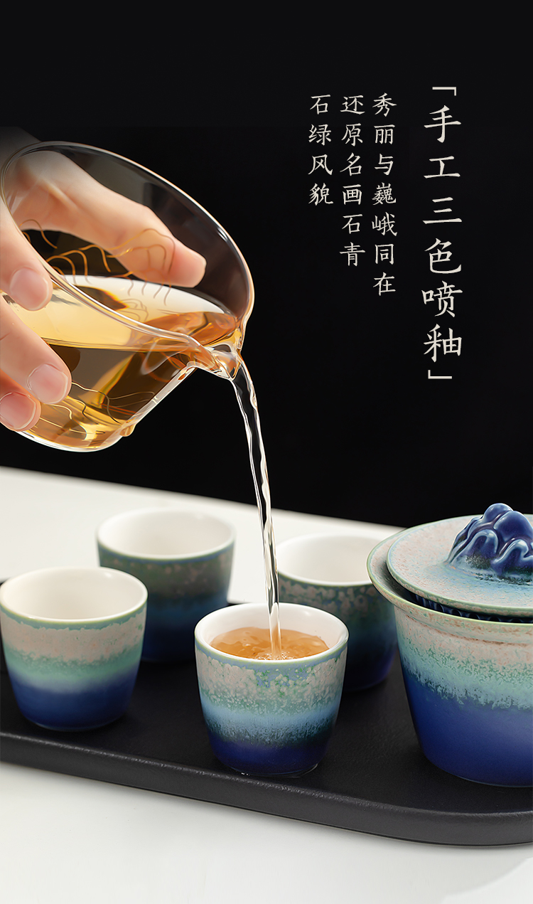 【故宫茶具】千里江山窑变快客杯茶具茶杯套装乔迁母亲节生日礼物