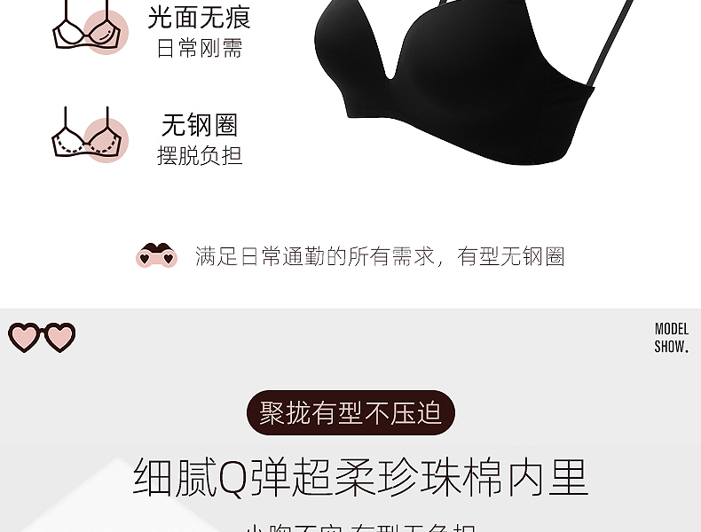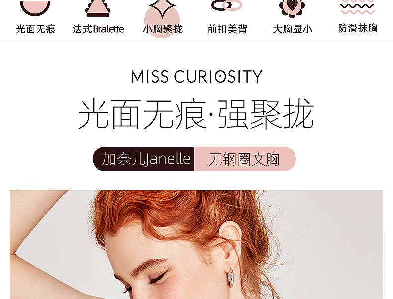 好奇蜜斯无痕内衣女小胸聚拢文胸套装上托防下垂薄款无钢圈胸罩 加奈儿