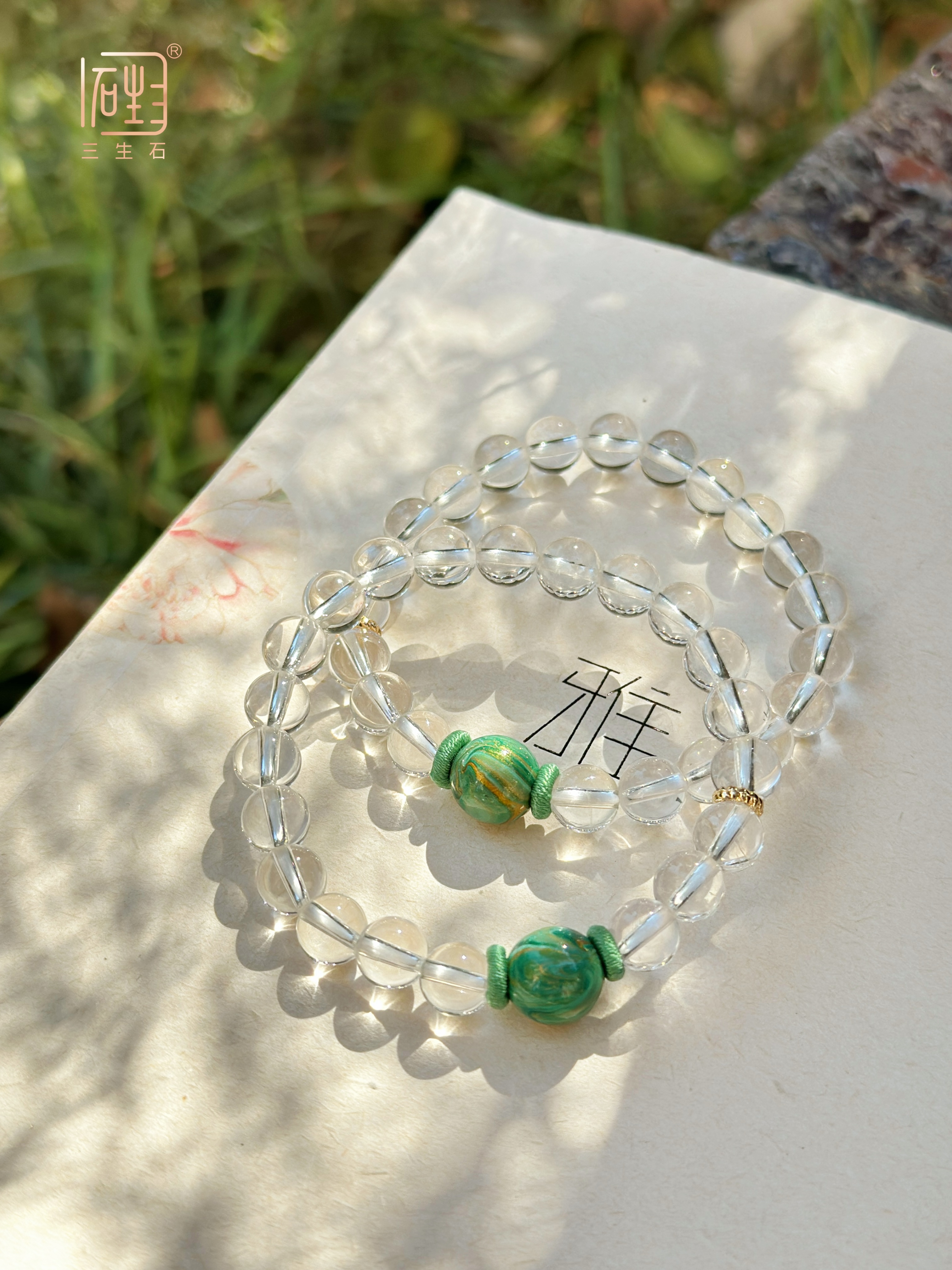 —— 诗意大漆珠白水晶手链、耳饰