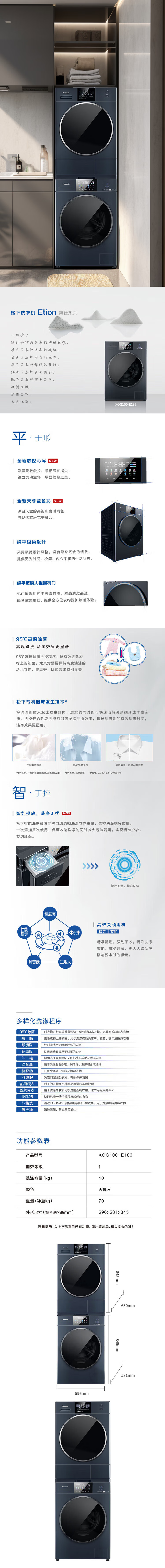 松下(Panasonic)(252090)洗衣机滚筒变频10kg 烘干机干衣机热泵10kg 天暮蓝 XQG100-E186+NH-ER185