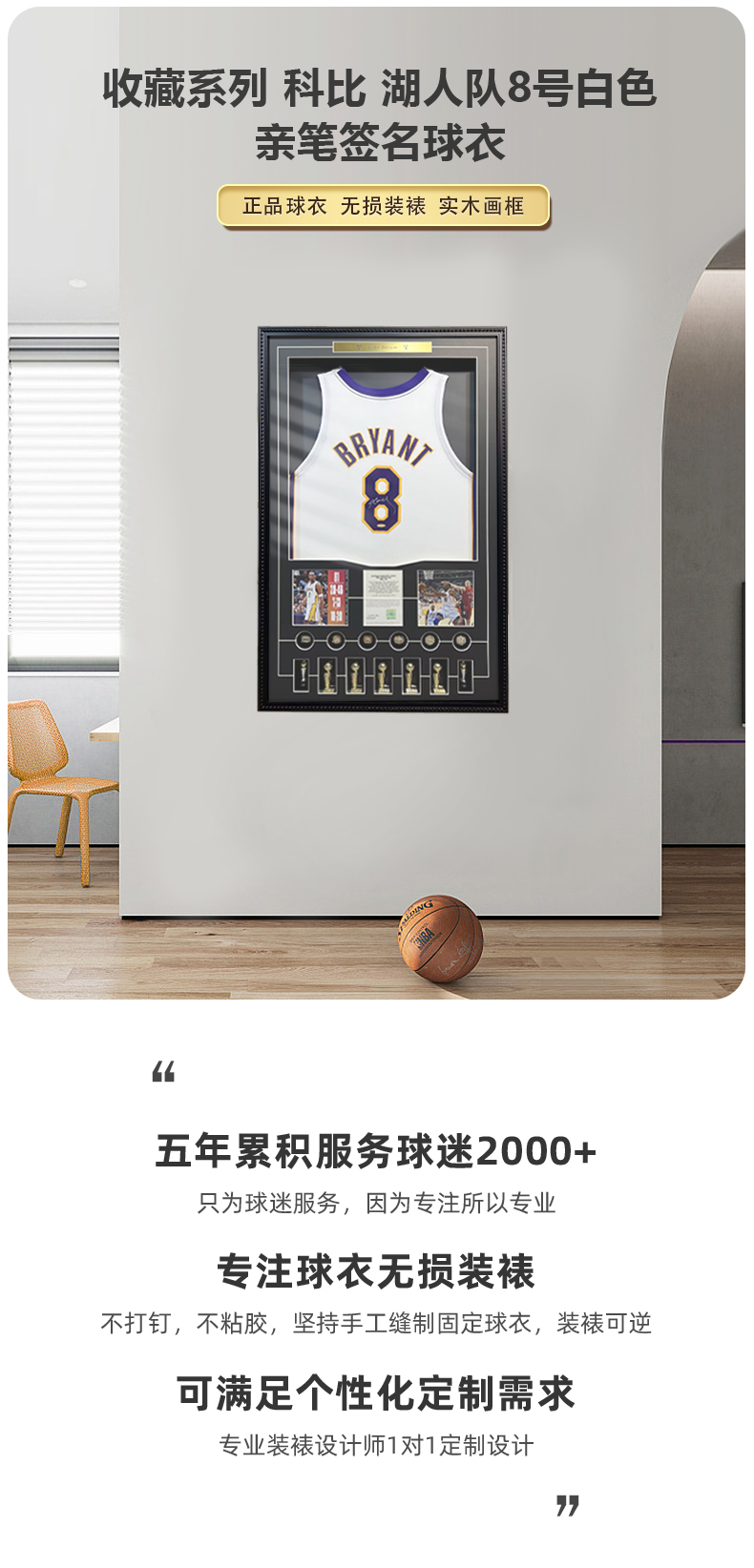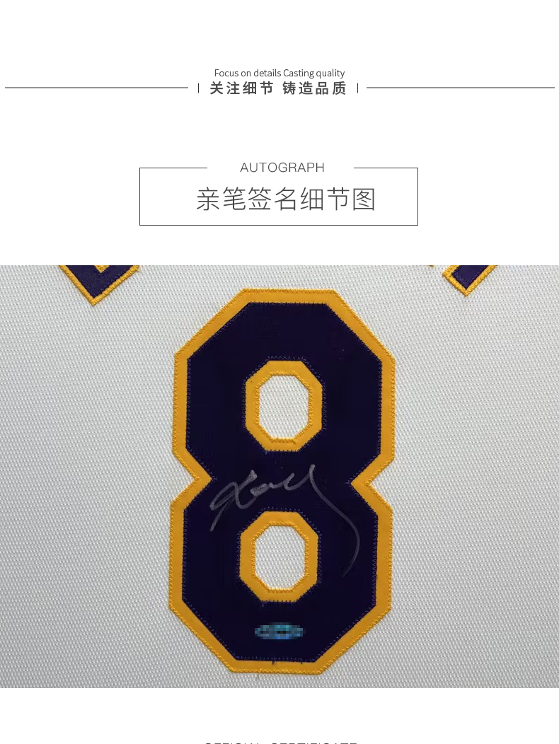 收藏系列 科比 湖人队8号白色 亲笔签名球衣