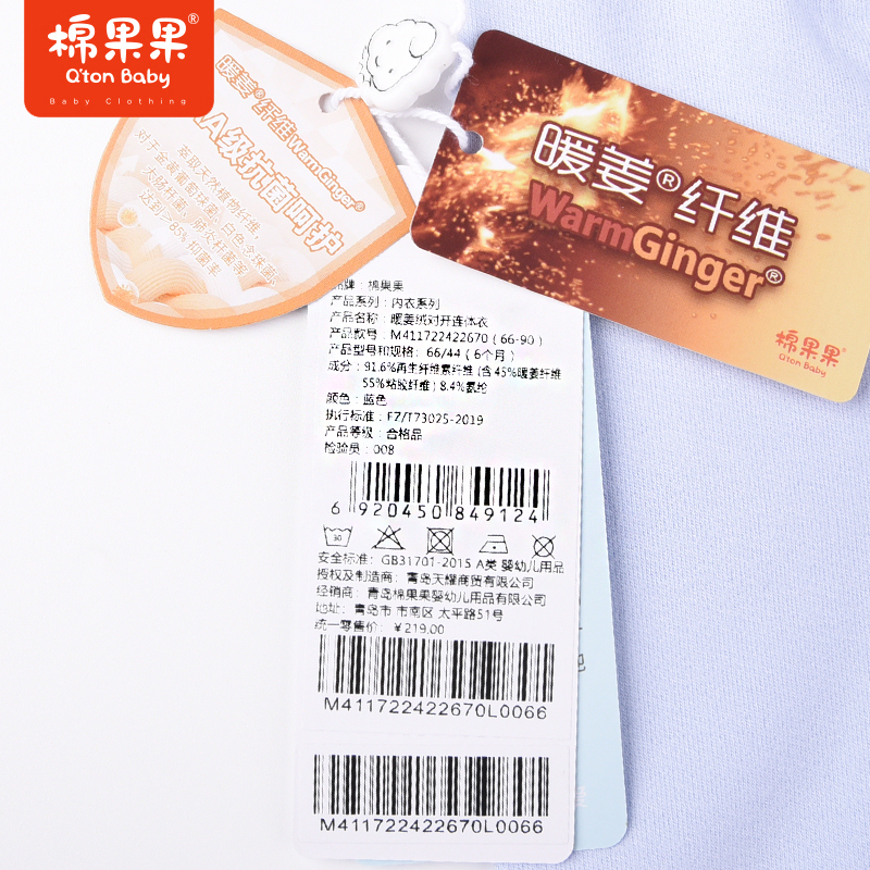 商场同款棉果果冬季科技面料男童家居外穿爬服舒适柔软自发热植物抗菌暖姜绒对开连体衣M411722422670