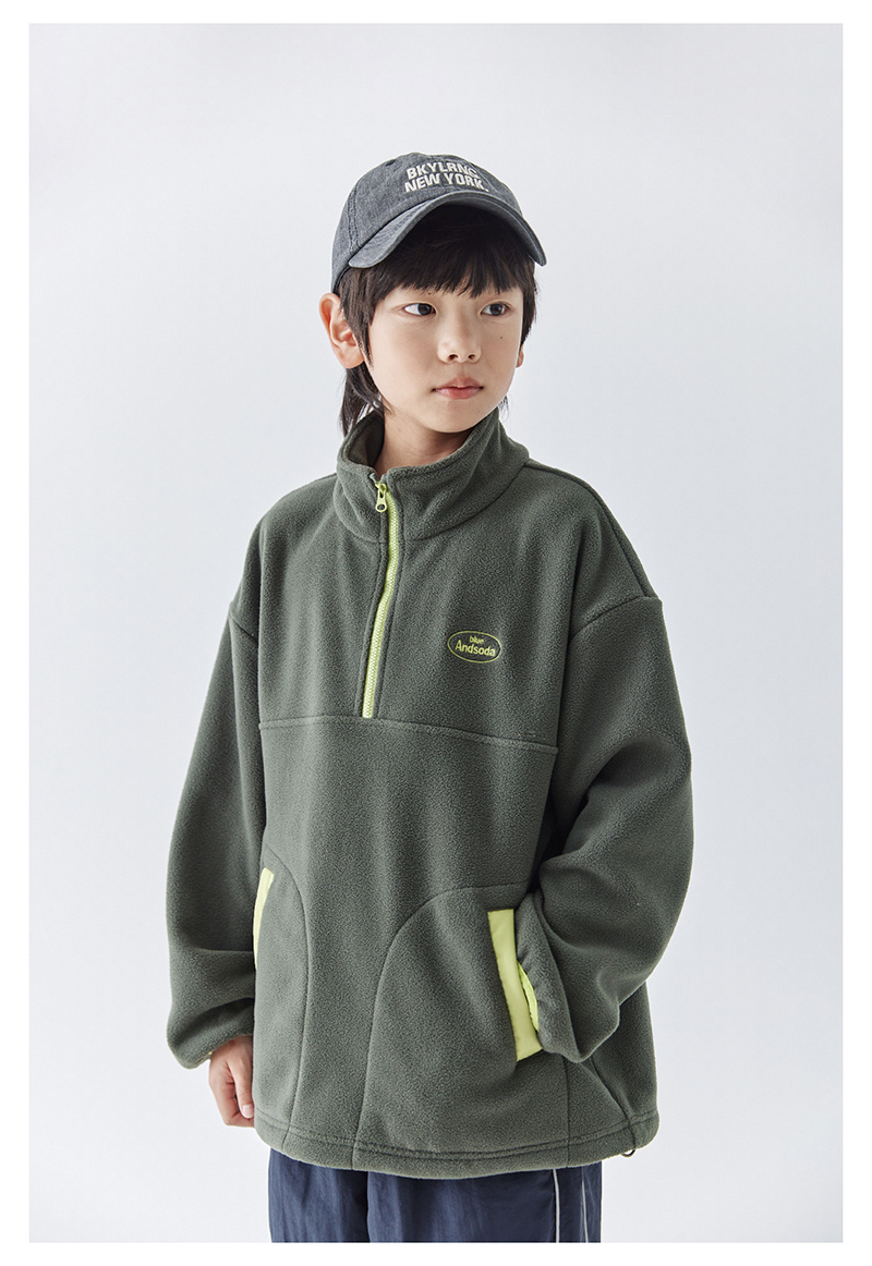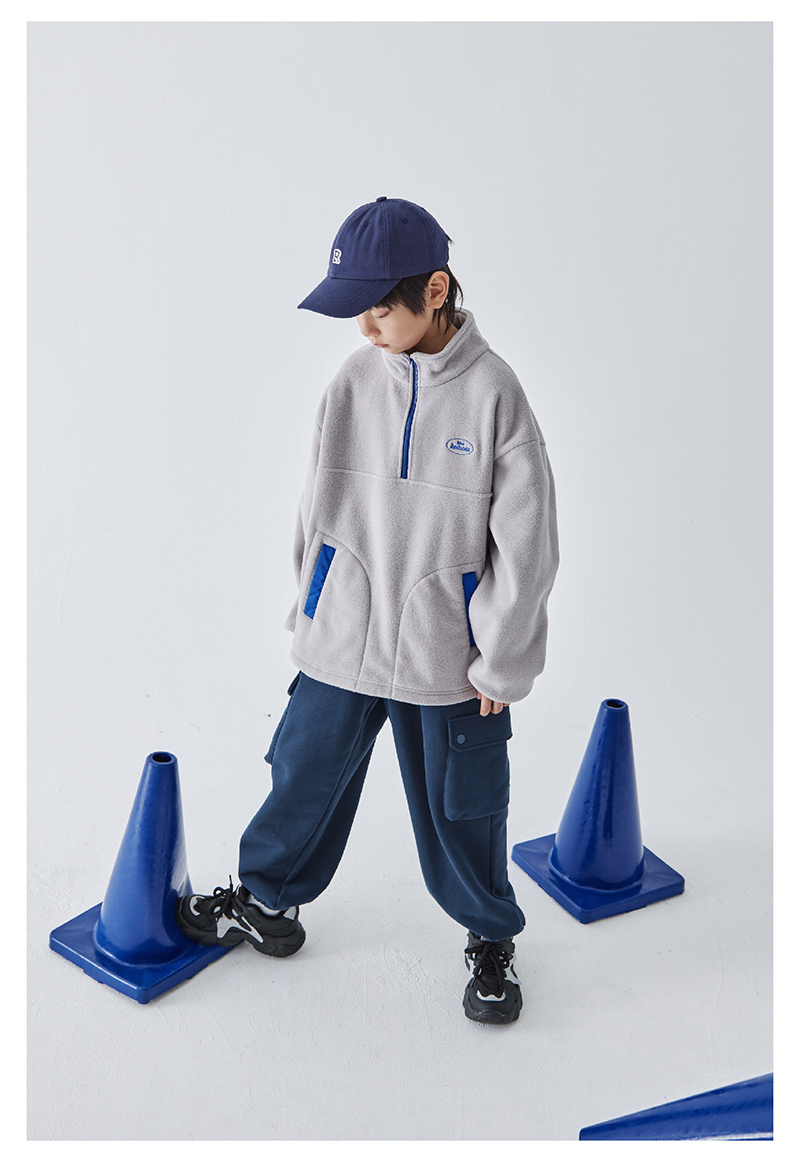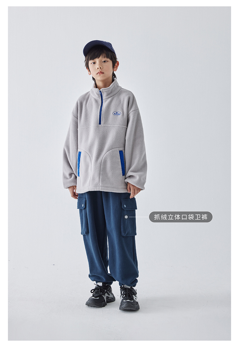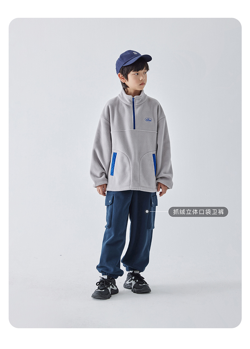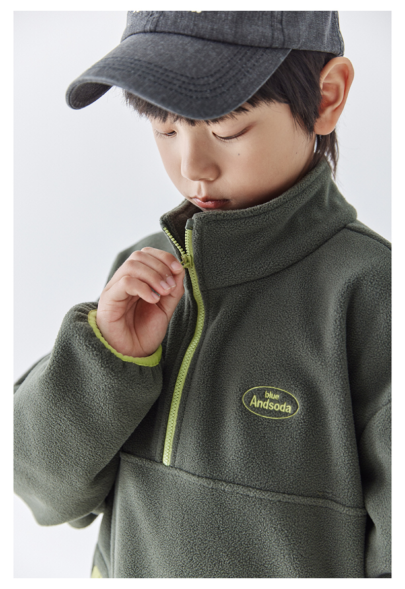 蓝汽水新款立领摇粒绒卫衣男童亲子柔软蓬松双面绒加厚外套