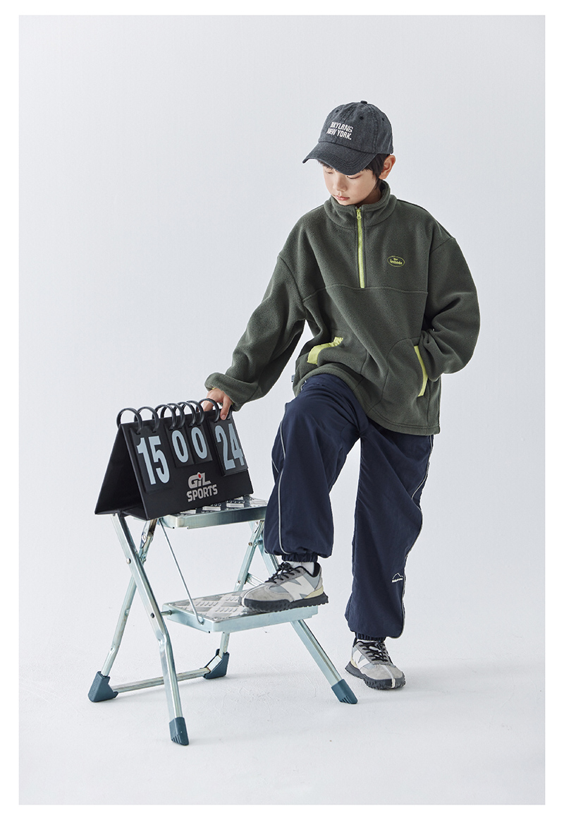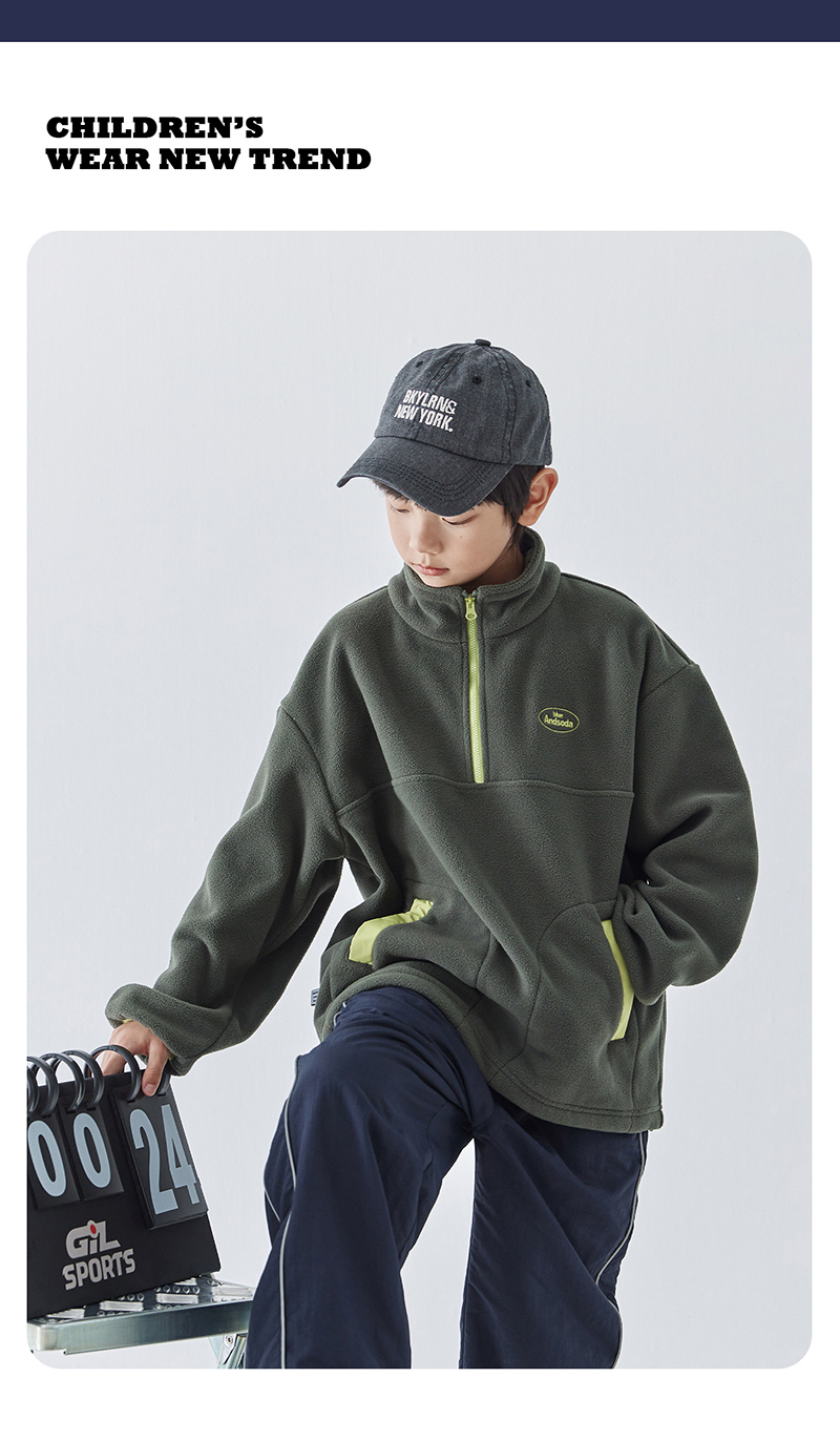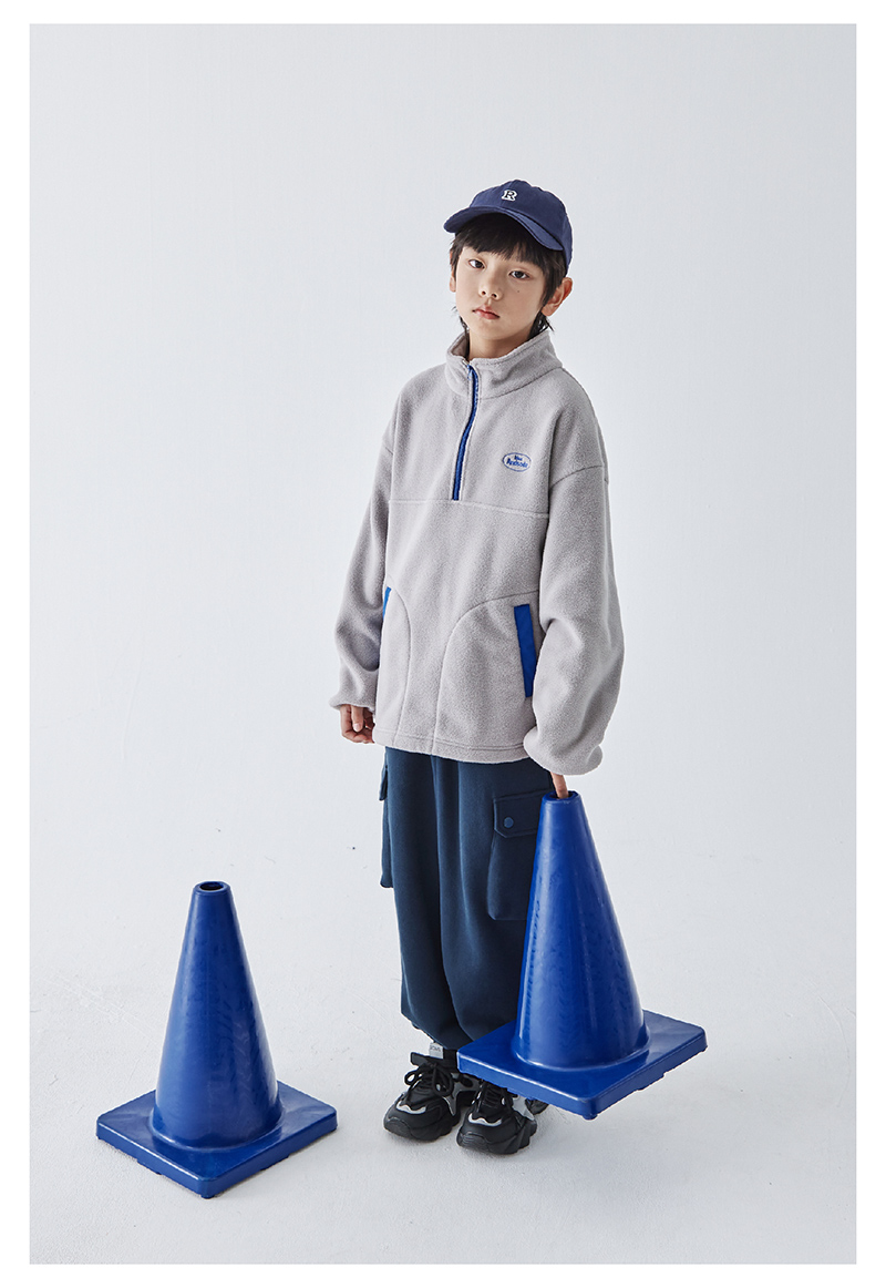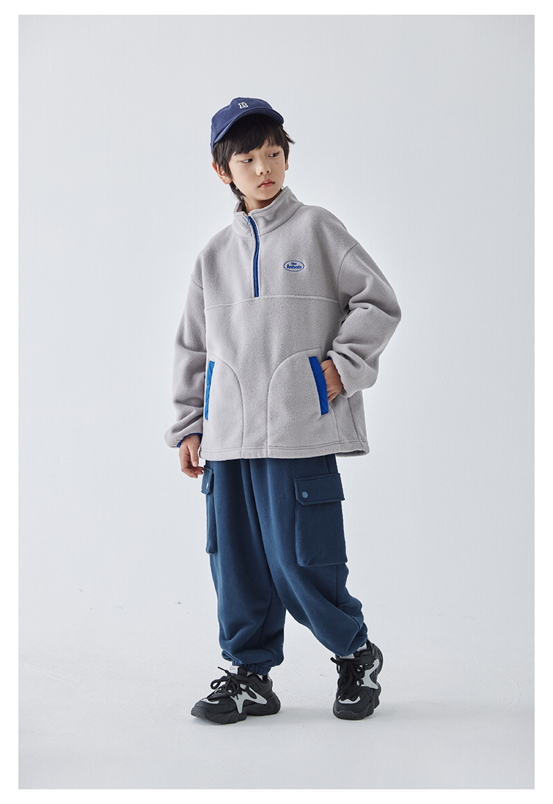蓝汽水新款立领摇粒绒卫衣男童亲子柔软蓬松双面绒加厚外套