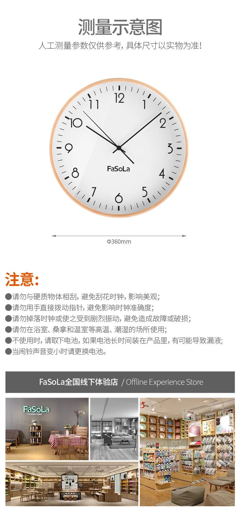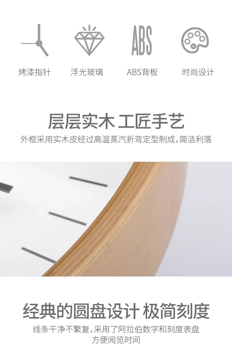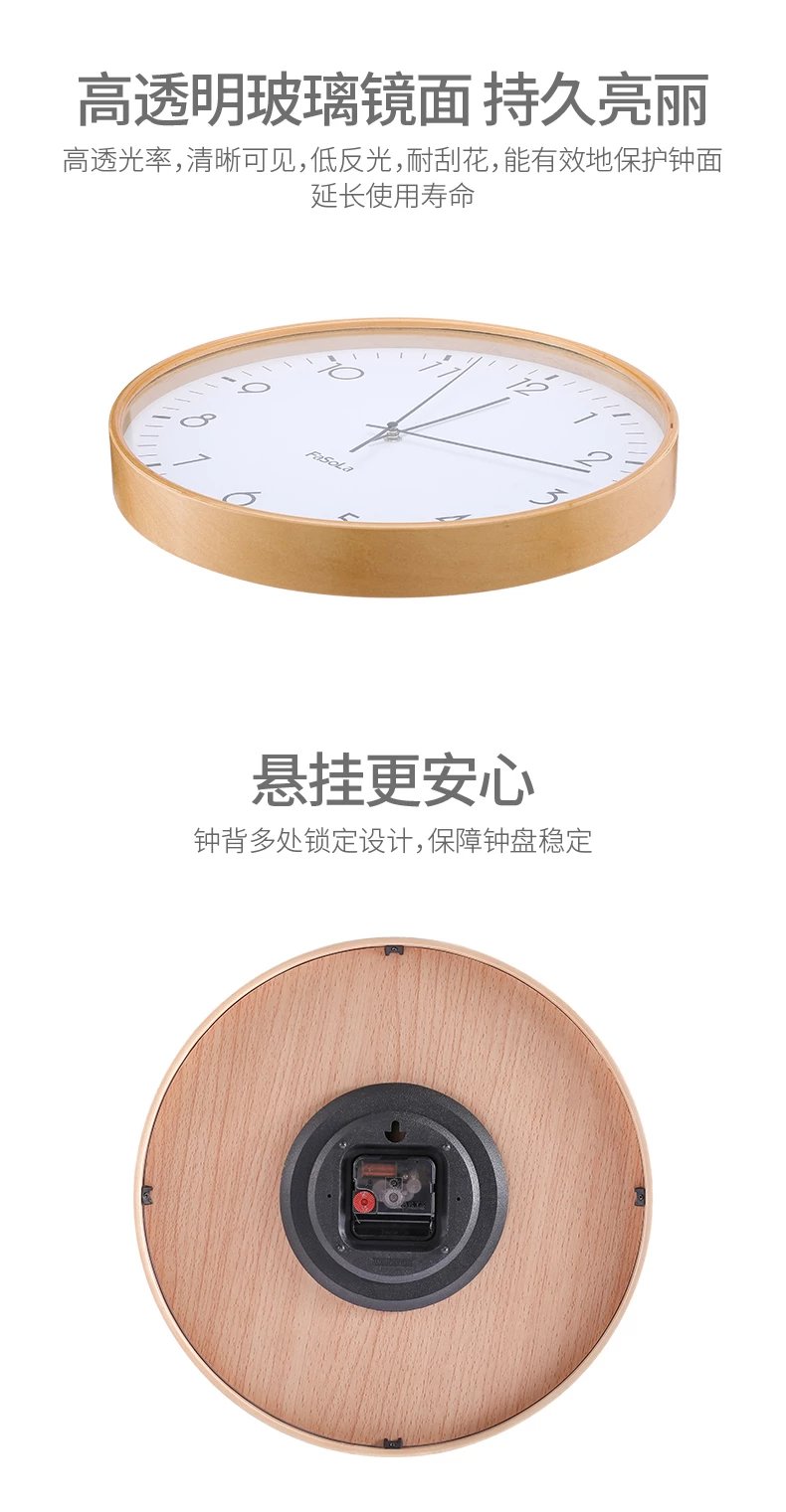 FaSoLa客厅钟表现代简约实木意时尚超静音卧室时钟墙上挂钟