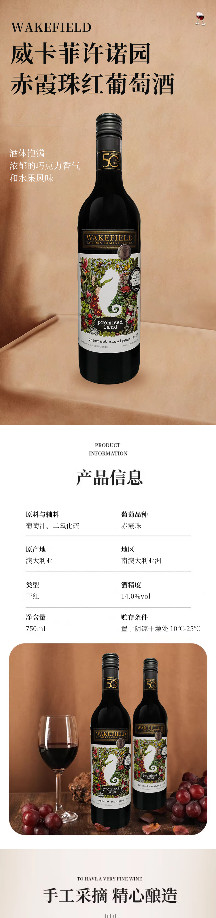 澳大利亚进口威卡菲许诺园赤霞珠红葡萄酒750ml