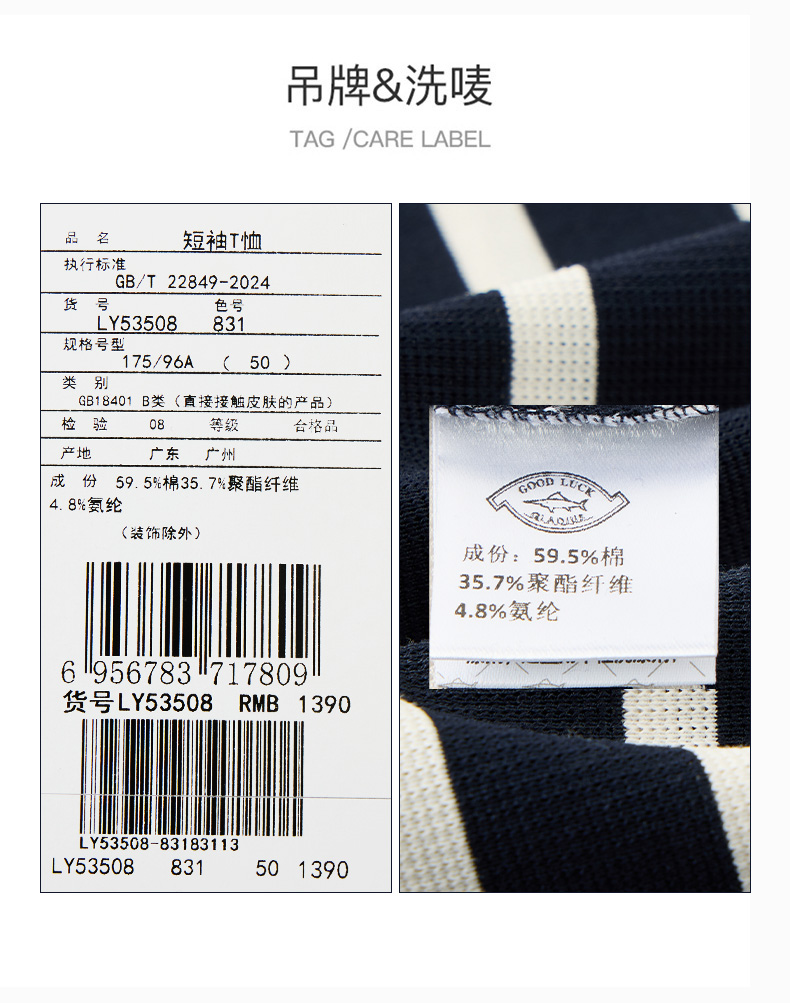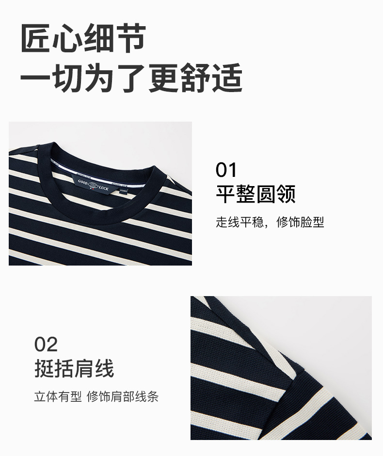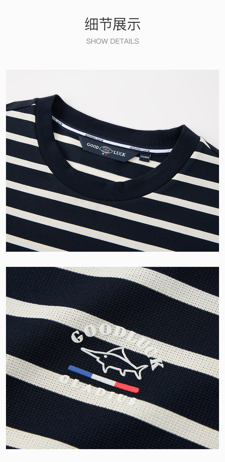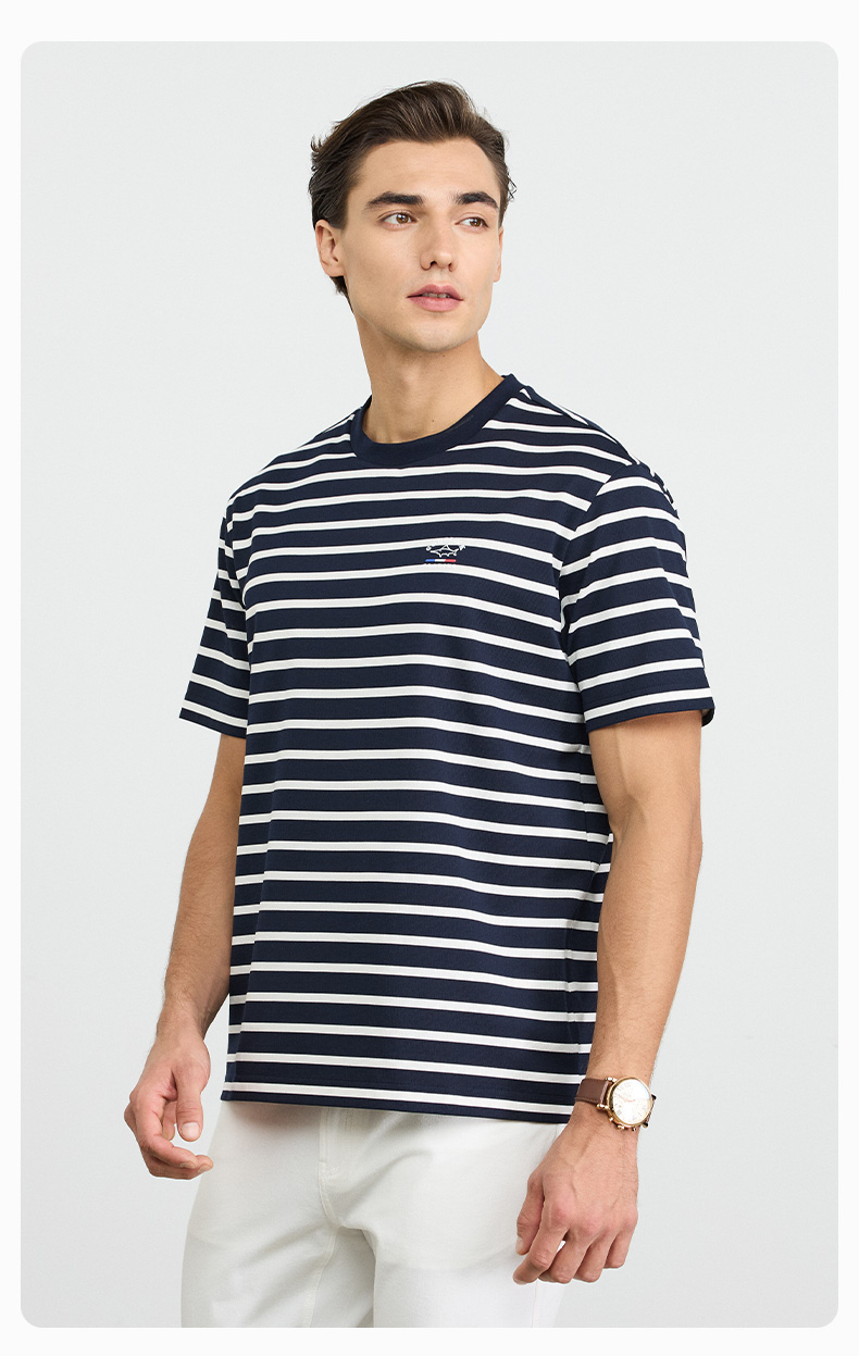 【棉混纺】德鲨条纹短袖圆领T恤男2026夏新款休闲弹力上衣打底衫