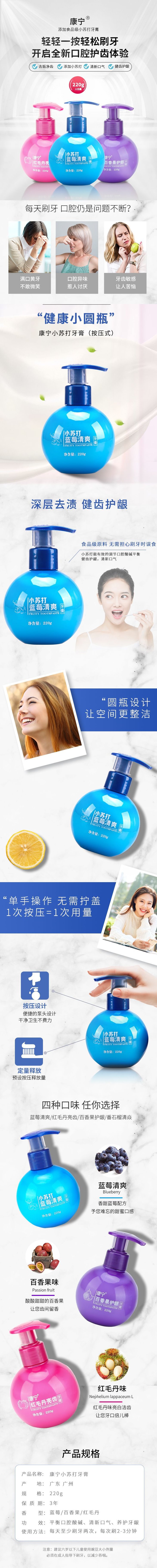 「三瓶装」小苏打牙膏 按压式牙膏去渍牙膏