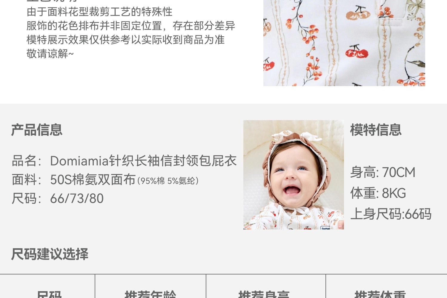 Domiamia 婴幼儿针织长袖信封领包屁衣