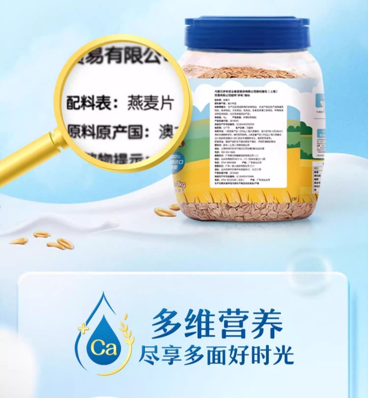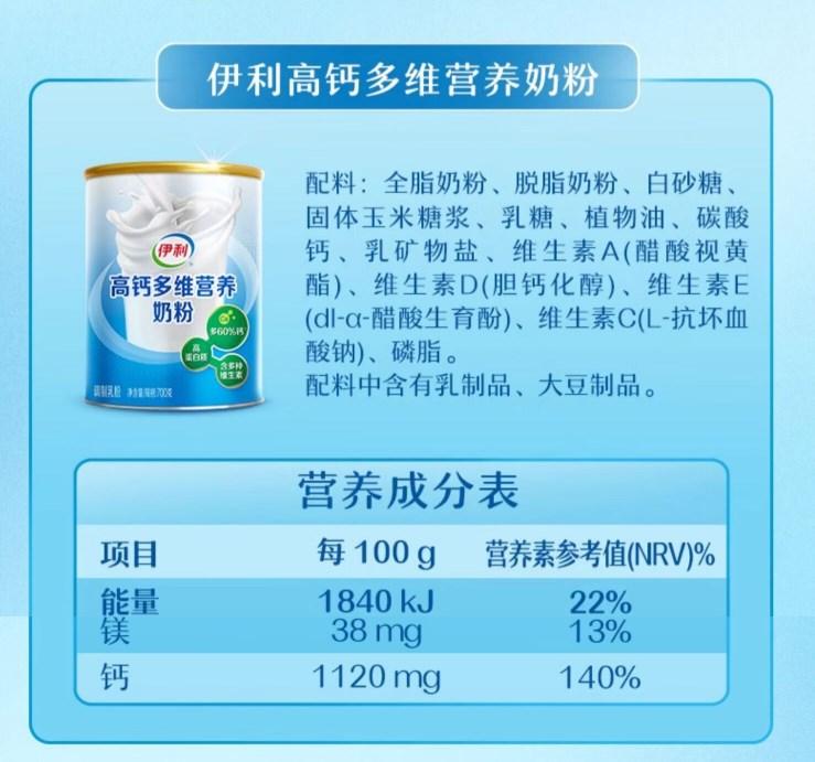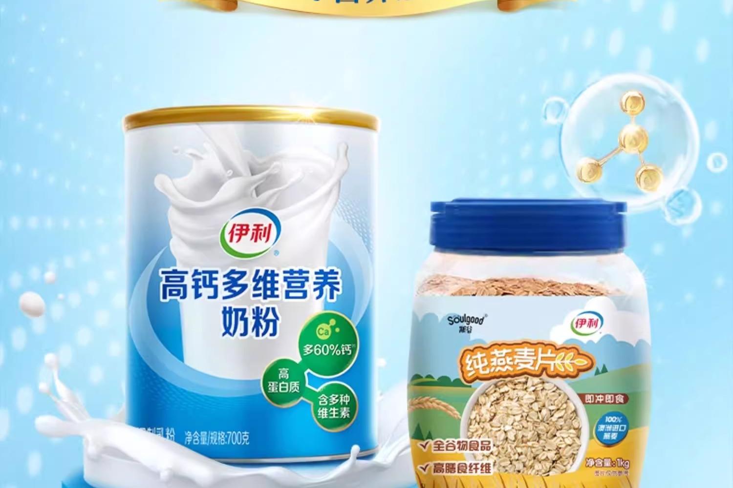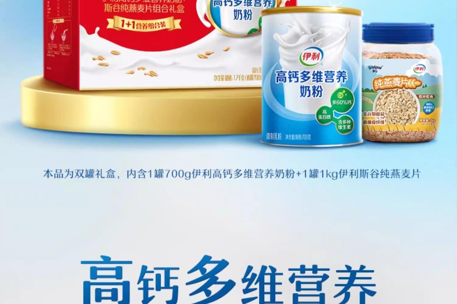 伊利高钙多维营养奶粉700g+纯燕麦片1kg组合礼盒装全家喝早餐营养