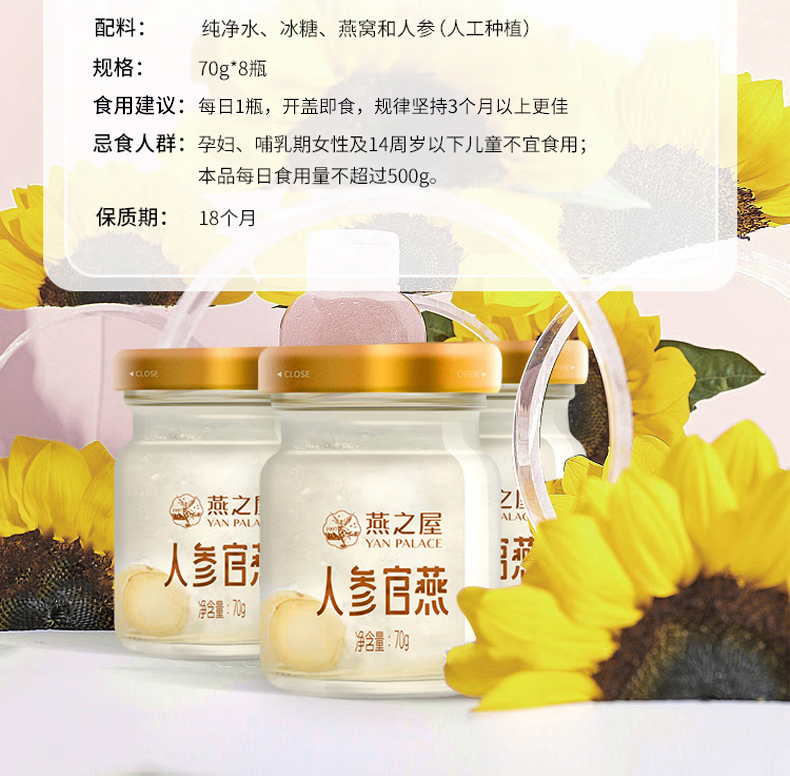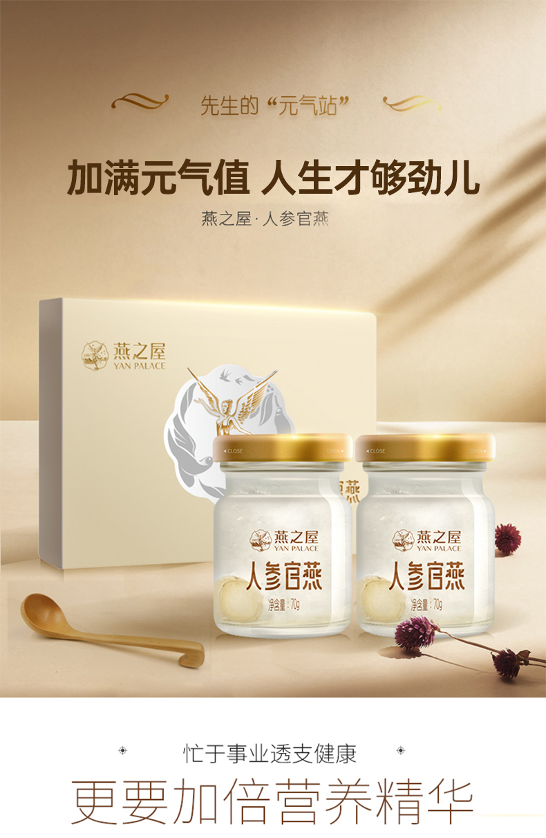 燕之屋即食燕窝人参官燕礼盒70g*8瓶 孝心礼品 送父母推荐【孝心礼盒】