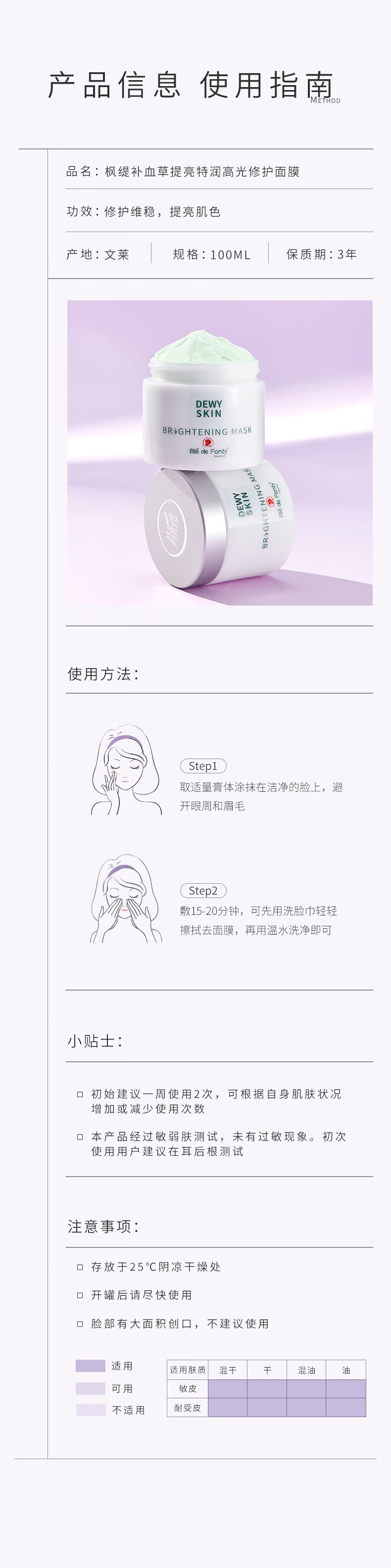 枫缇高光修护涂抹面膜 补血草提亮补水维稳强韧保湿面膜100ml