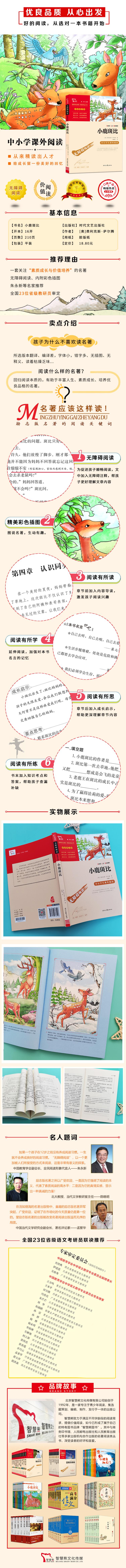 《小鹿斑比》是奥地利著名作家费利克斯·萨尔腾的一部儿童文学作品,讲述了斑比从一只离不开妈妈的小鹿成长为森林里尊贵的鹿王的经历。在这个过程中,他享受过亲情、友情、爱情的温暖,得到过老鹿王的指导和森林里其他动物的帮助,也目睹过同伴的死亡、人类对森林的破坏。他的内心是在希望、悲伤、忧郁、感动之间跌宕起伏。他的成长并不是一帆风顺的,但他最终成为一代鹿王,并像老鹿王当年引导他一样,他也开始引导新一代鹿王。作者在着力叙写斑比成长过程的同时,也穿插大段自然景色、动物生活百态的描写。在书中,森林就像一个充满诗意的大家庭,每一个动物都富有性格,这些动物同人类一样,有喜悦,有恐惧,追求幸福,向往自由。从这个方面来说,本书也更像一部“自然启示录”,呼唤人与动物平等对话,和谐相处。《小鹿斑比》自出版以来,深受世界各地读者的喜爱。它被译成多种文字介绍到各国。通过阅读这本关于爱、成长与生命的作品,读者不仅可以了解小动......
