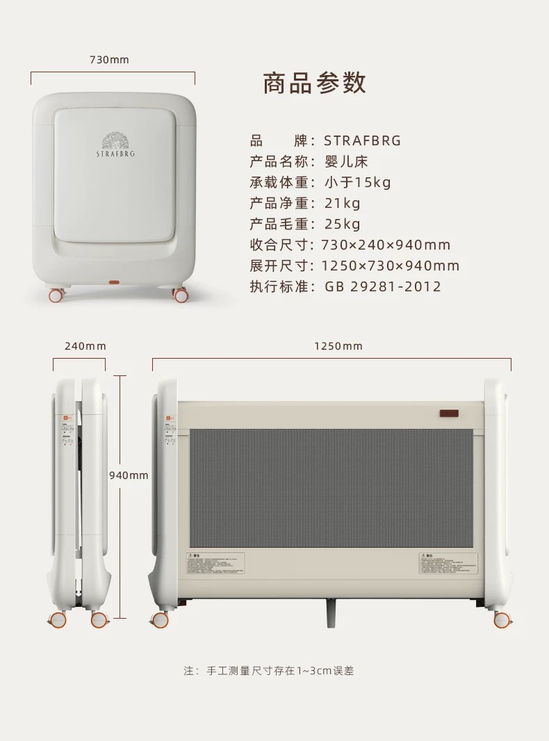 【品牌直供】STRAFBRG舒适宝折叠婴儿床