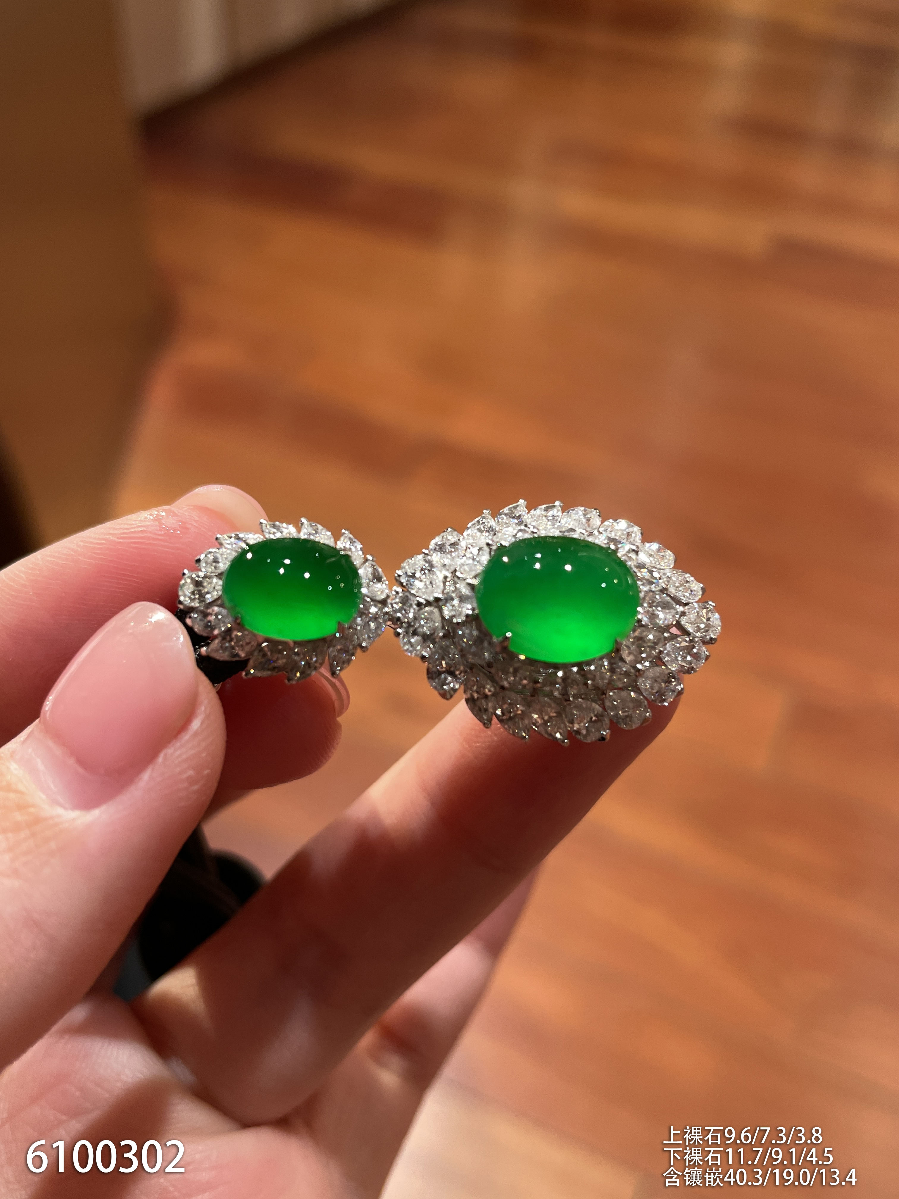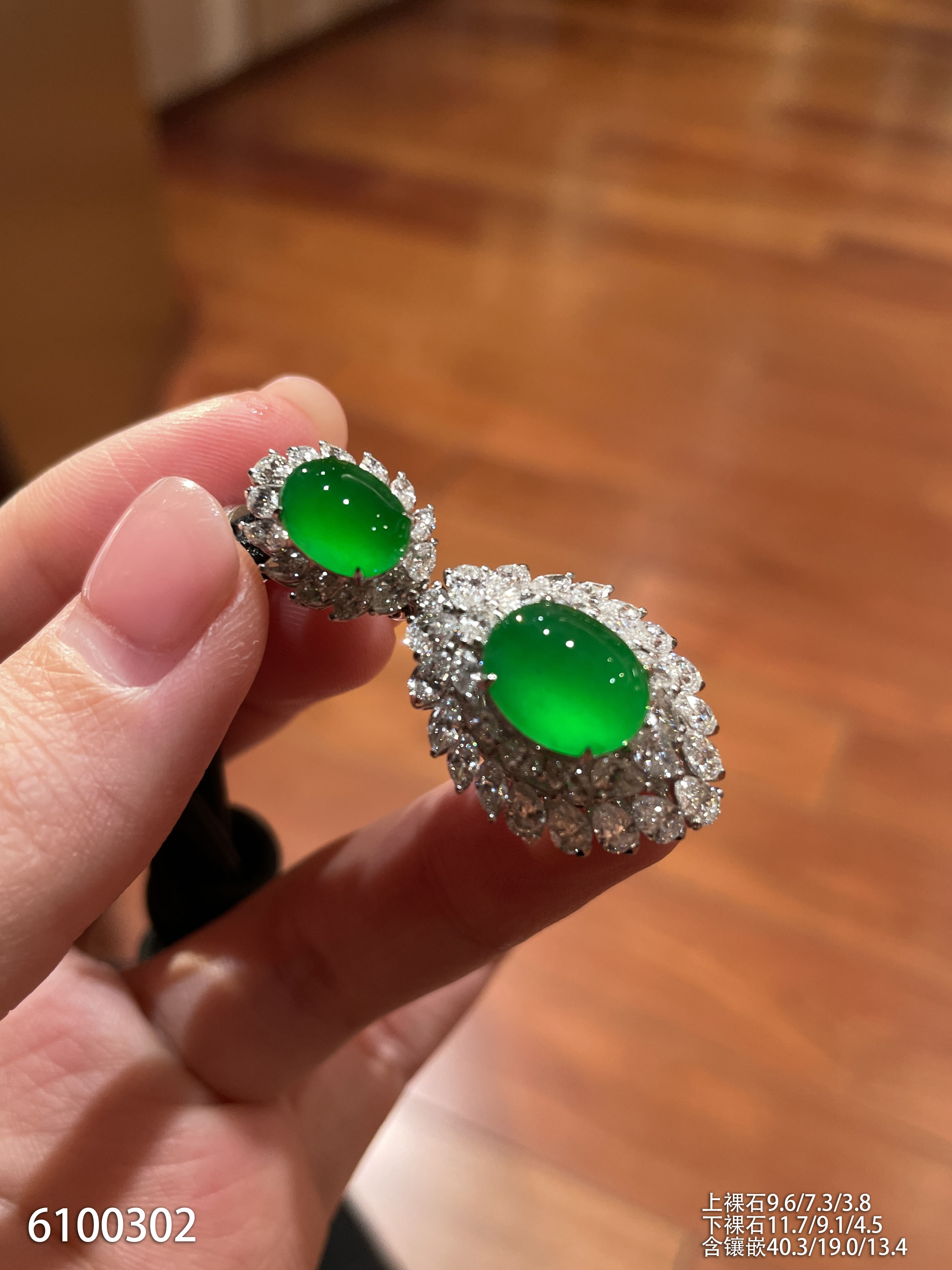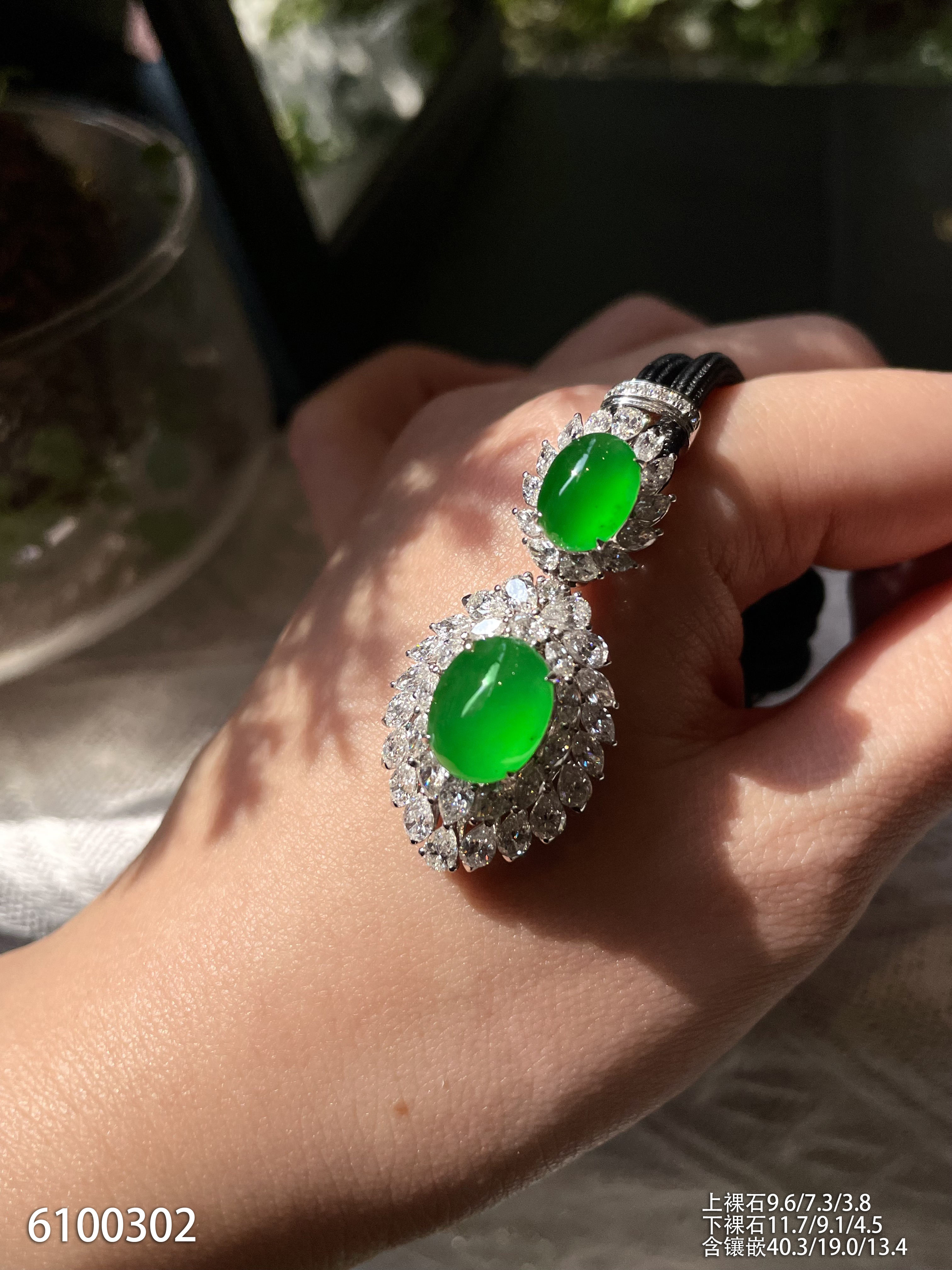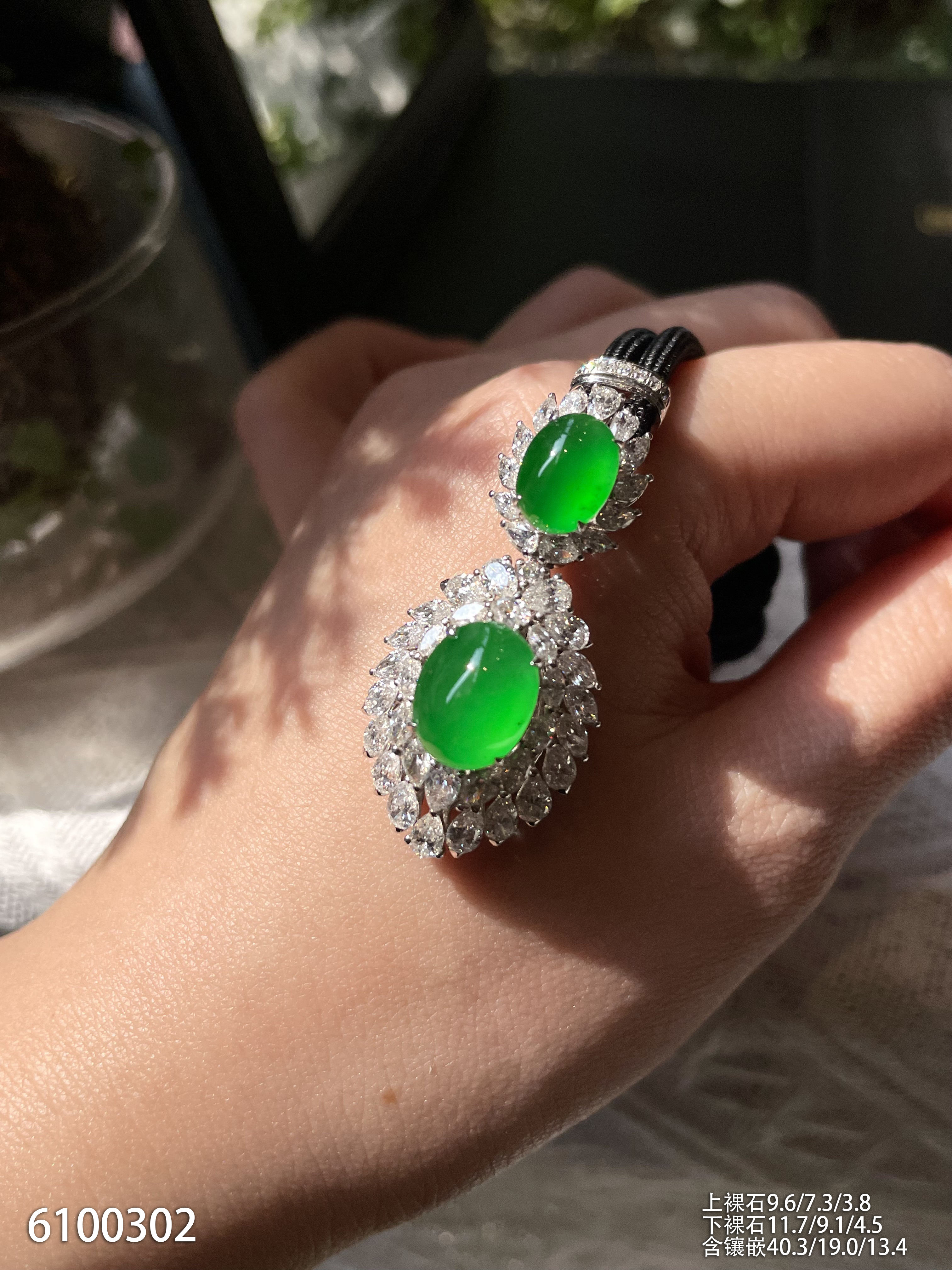81-1072707,老坑玻璃种帝王绿蛋面耳坠,具体价格微信咨询