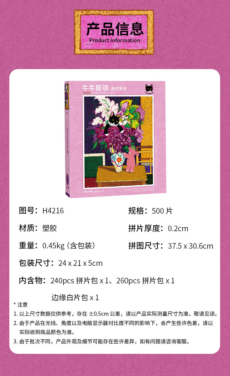 500片 平面塑料拼图 H4216 牛牛斯頓-名作系列-花儿盛开了
