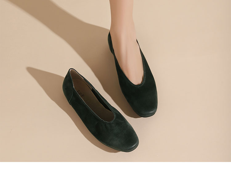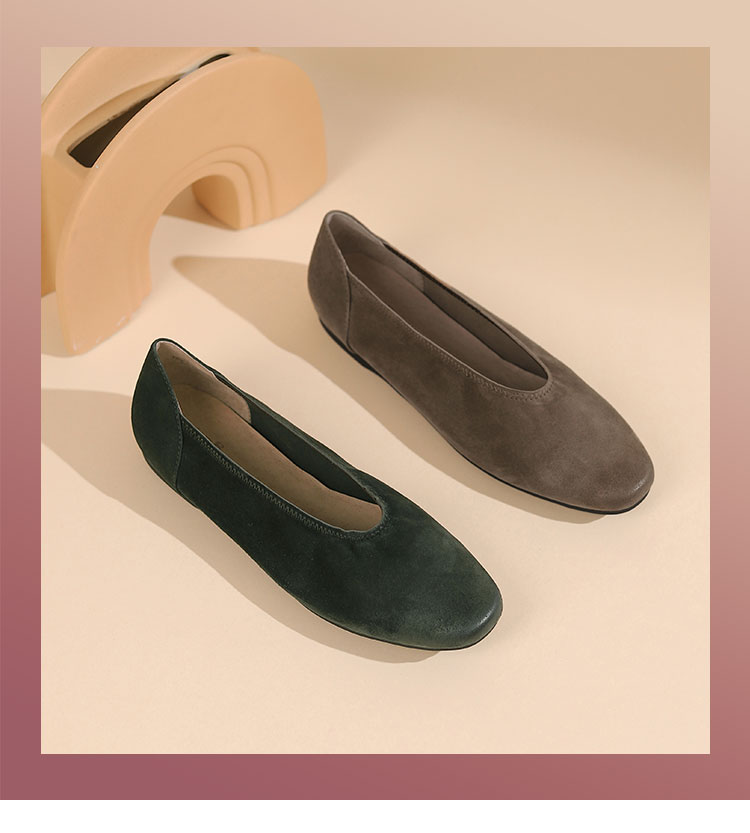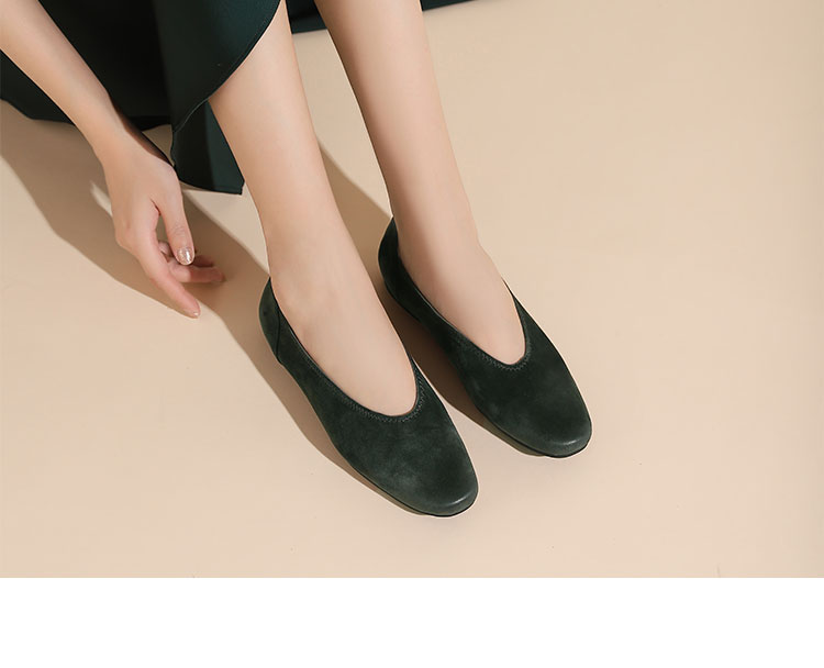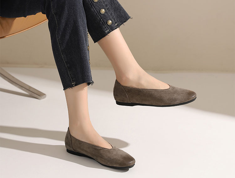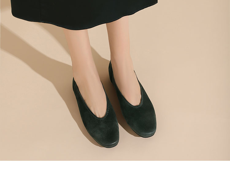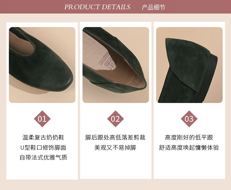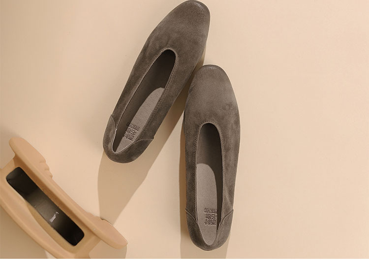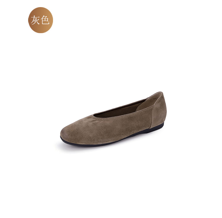 商场同款2023秋新款优雅羊皮绒面平底奶奶鞋浅口时装通勤鞋T23CE34241