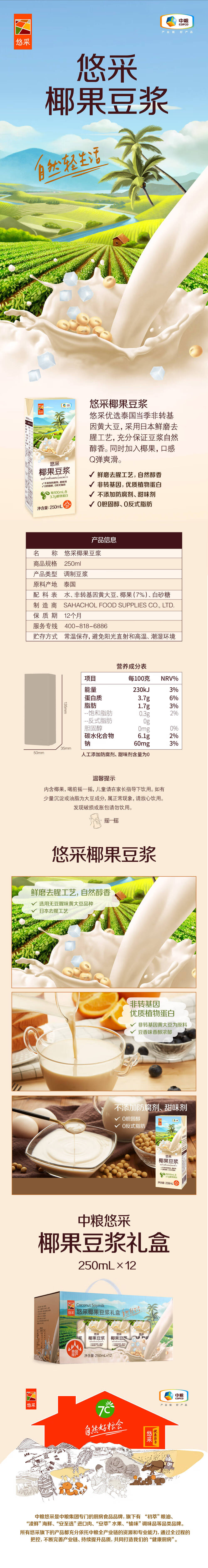 【特惠保质期到2025-10-23到期介意慎拍】中粮悠采椰果豆浆250ml*12盒/提
