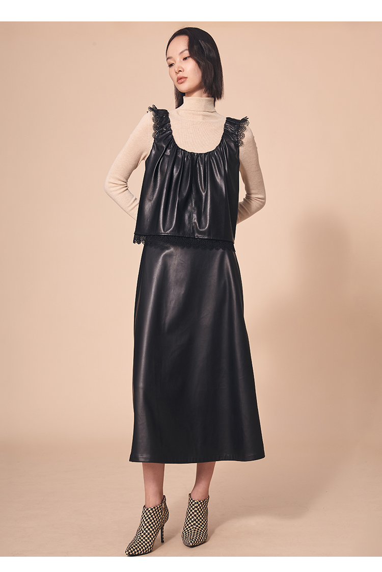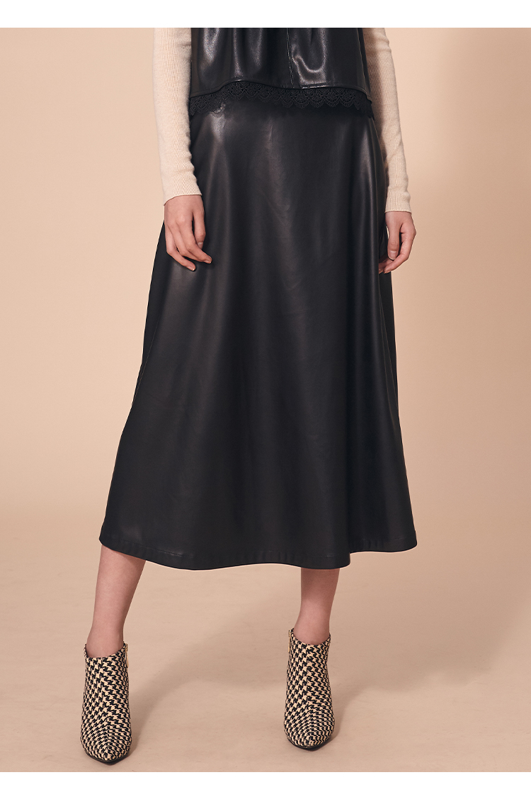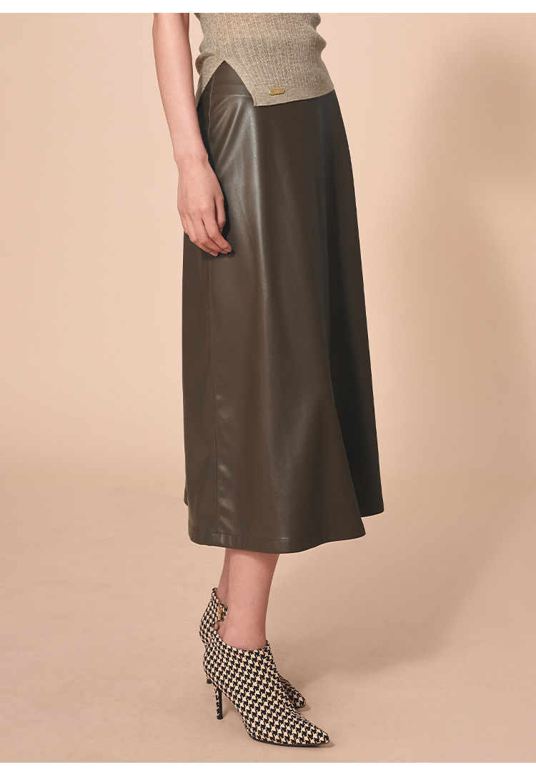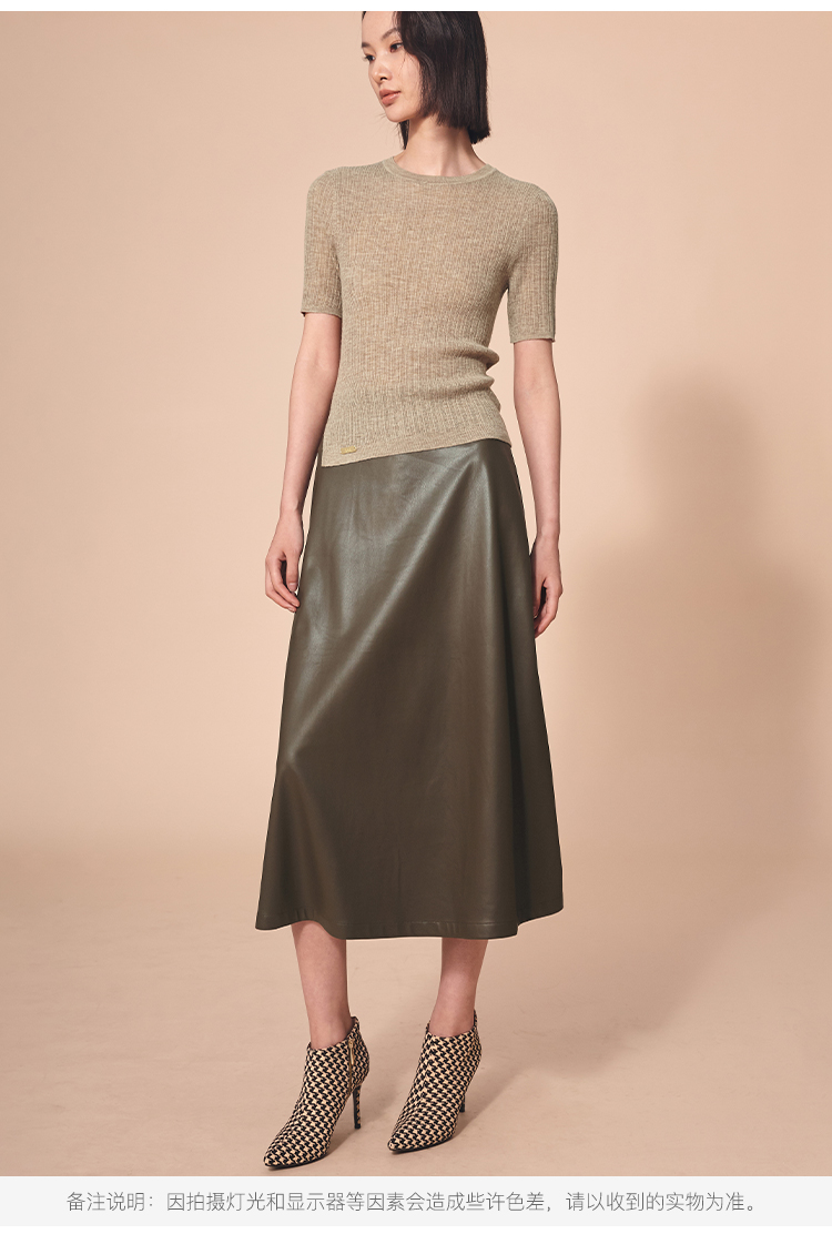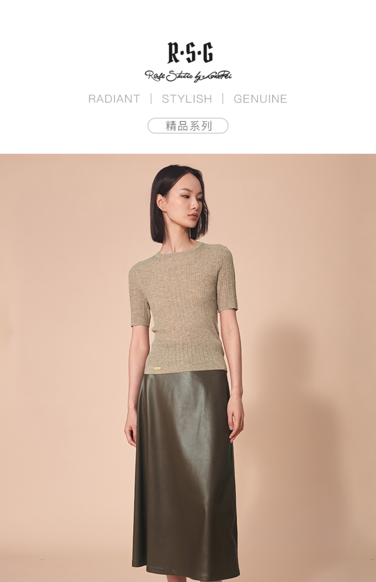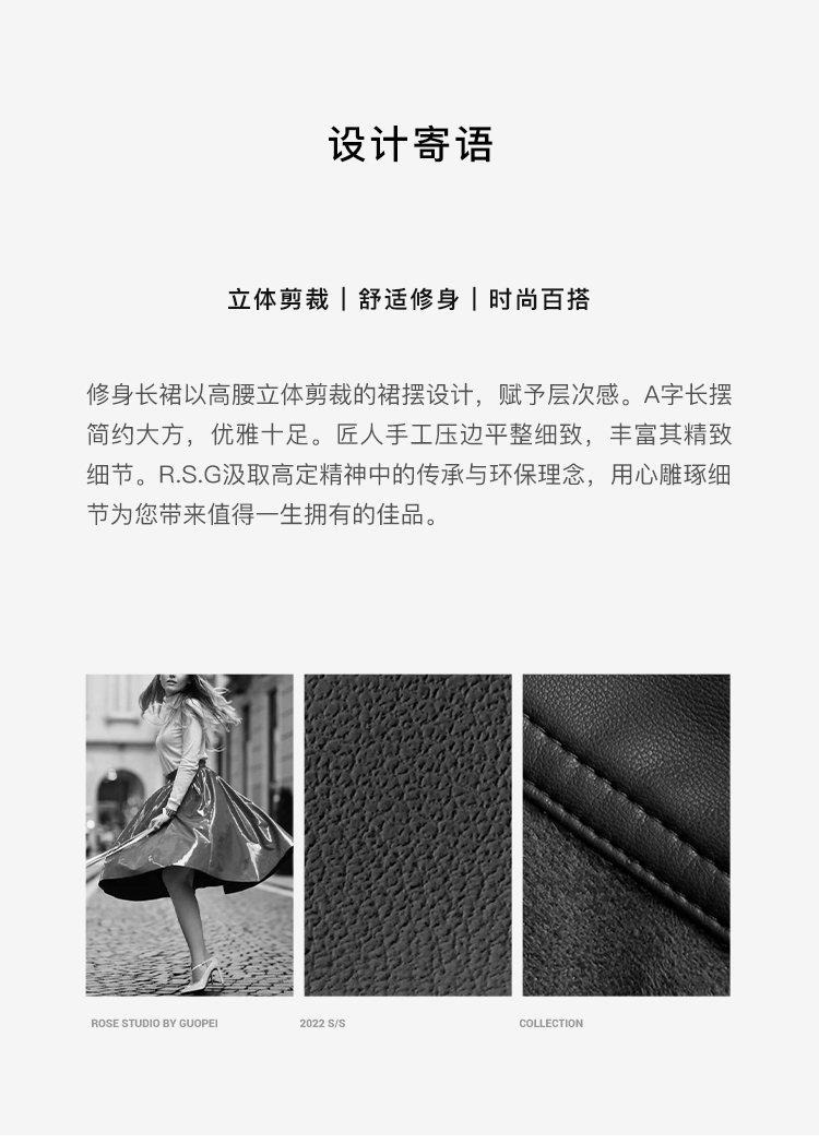 RSG郭培成衣品牌纯色高级感修身高腰皮质长裙百搭