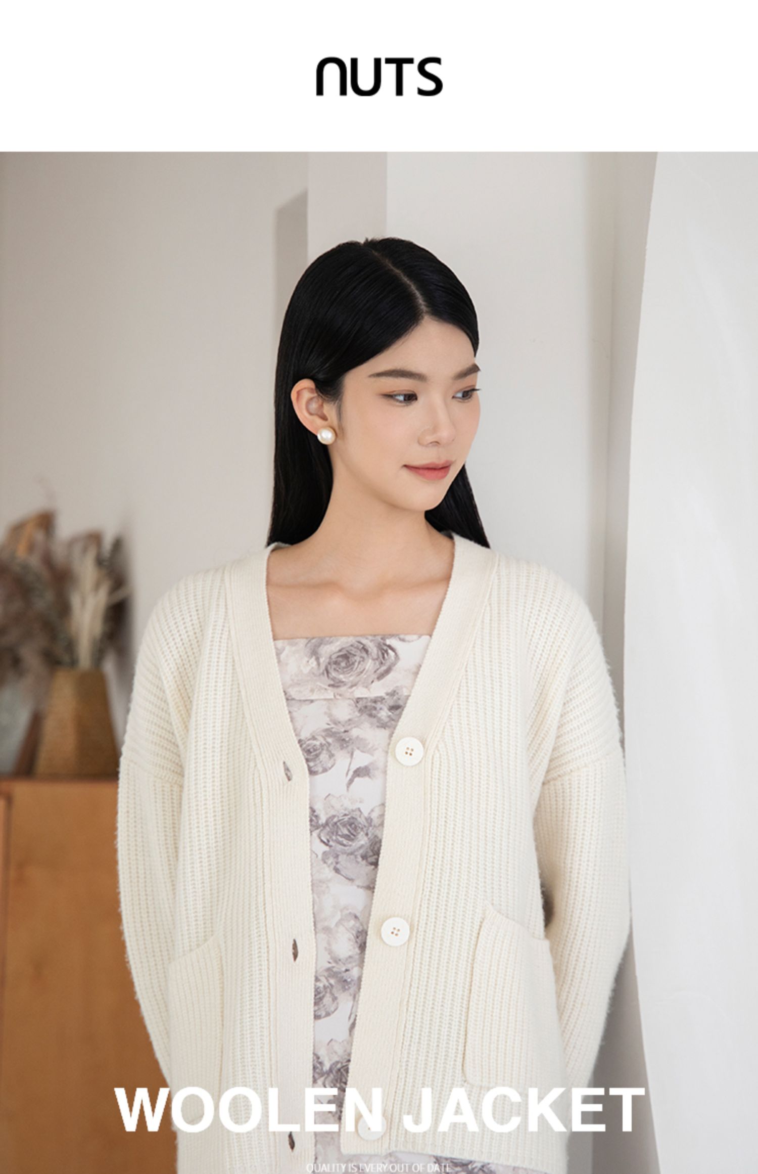 NUTS2023秋季新款气质休闲百搭小香风毛织开衫中外套女4390502A1