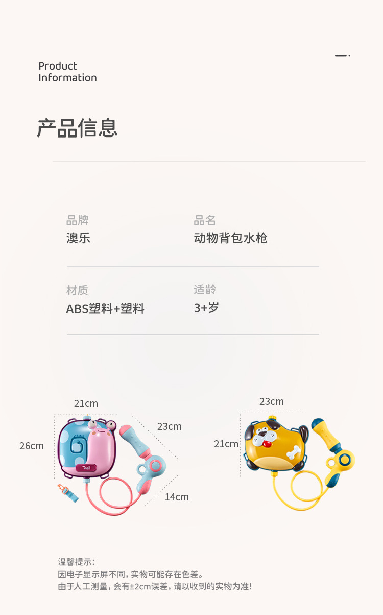 【品牌直发】澳乐背包水枪儿童玩具喷水夏天男女孩网红抽拉式呲滋水打水仗神器