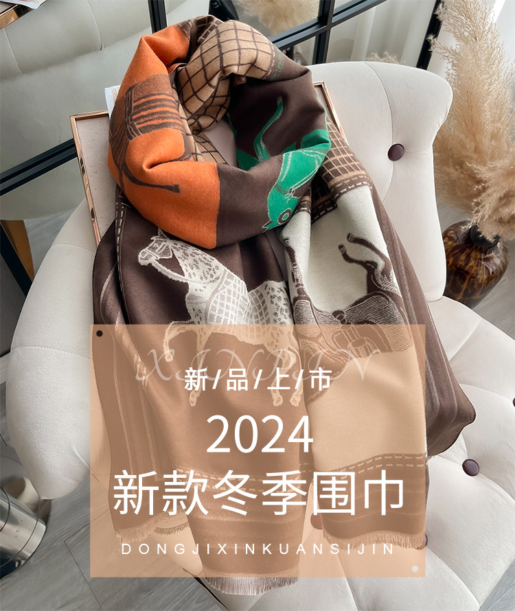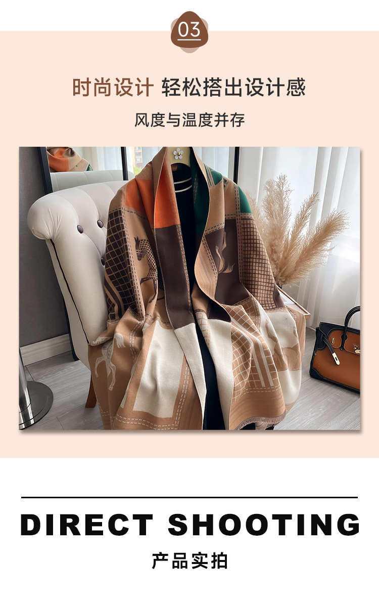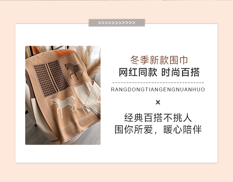 秋冬季新款围巾女 网格色块马匹碰撞 时尚大气 百搭围巾女士 仿羊绒保暖围巾 空调披肩围脖