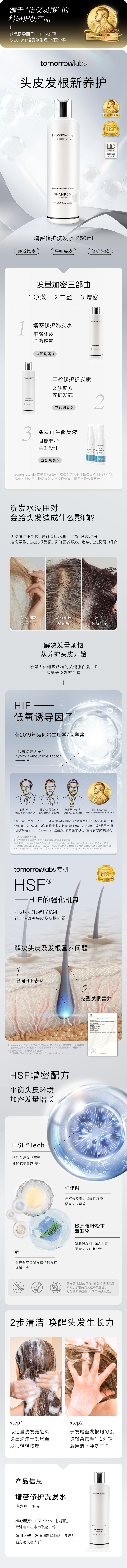 tomorrowlabs增密修护洗发水250ml清爽控油蓬松护发无硅油