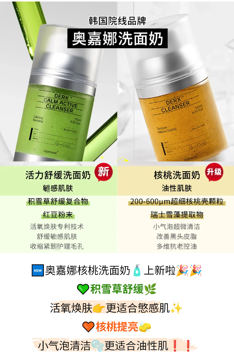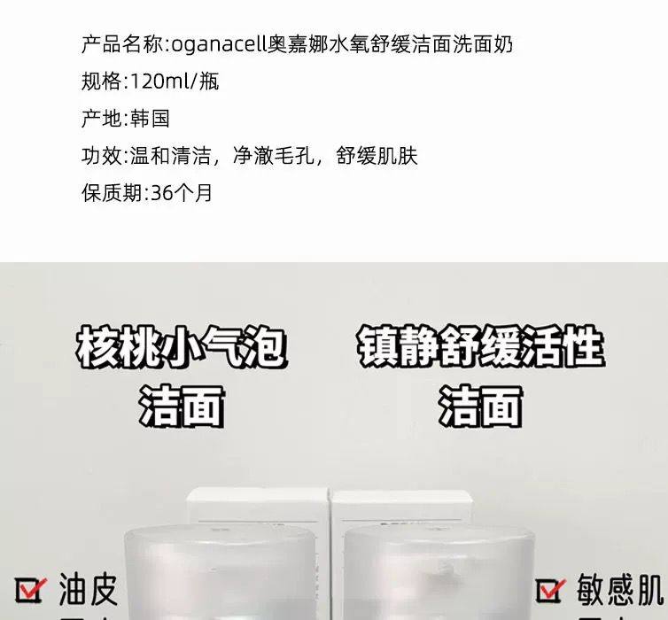 韩国oganacell奥嘉娜核桃洁面小气泡洗面奶120ML 多肽氨基酸控油温和女