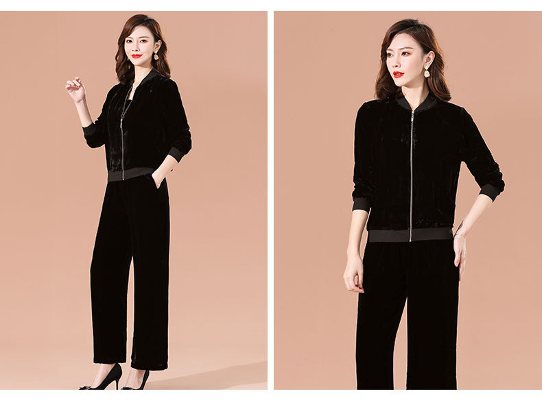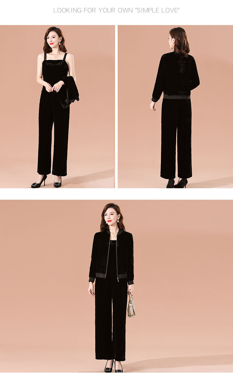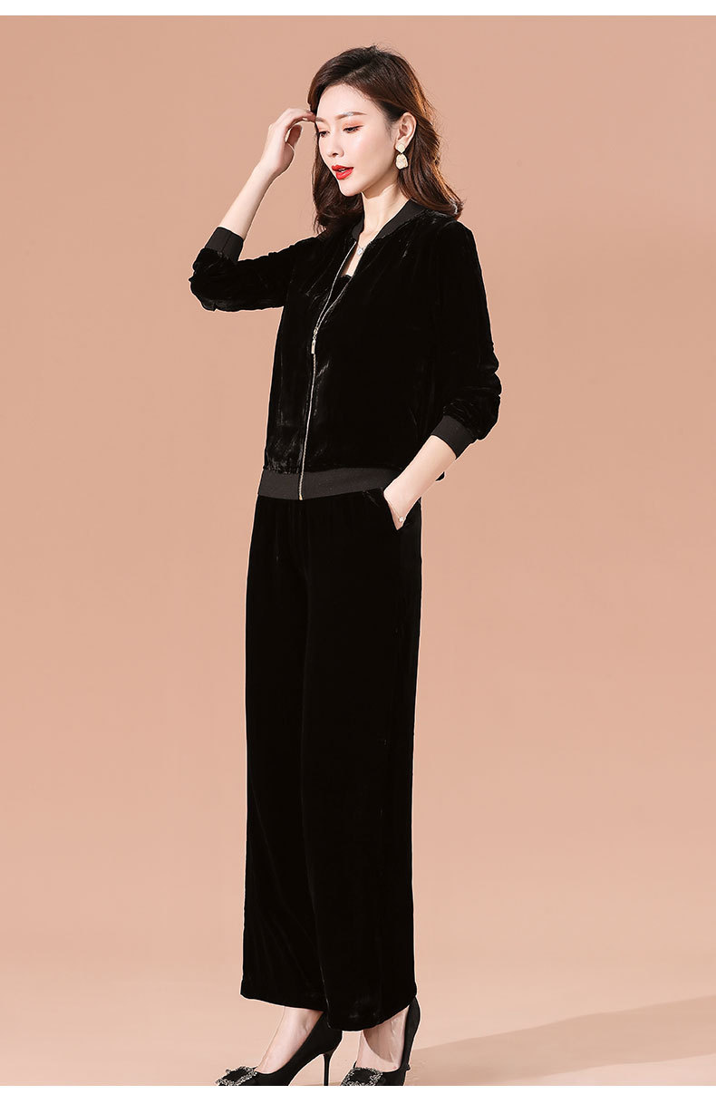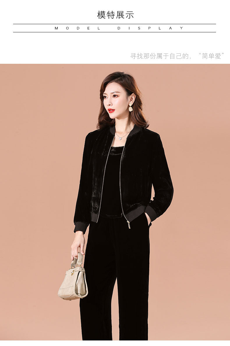 金丝绒女人味真丝绒通勤小洋装两件套装KQ-85808