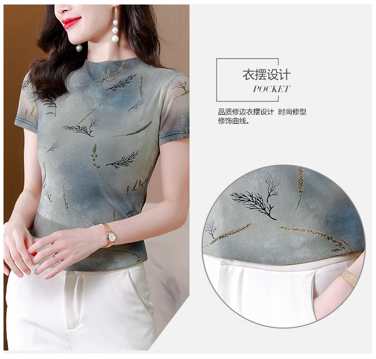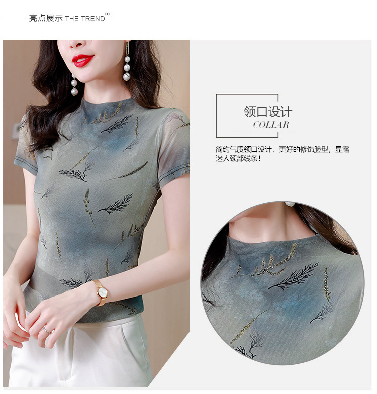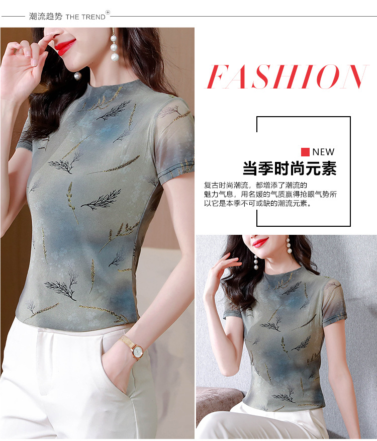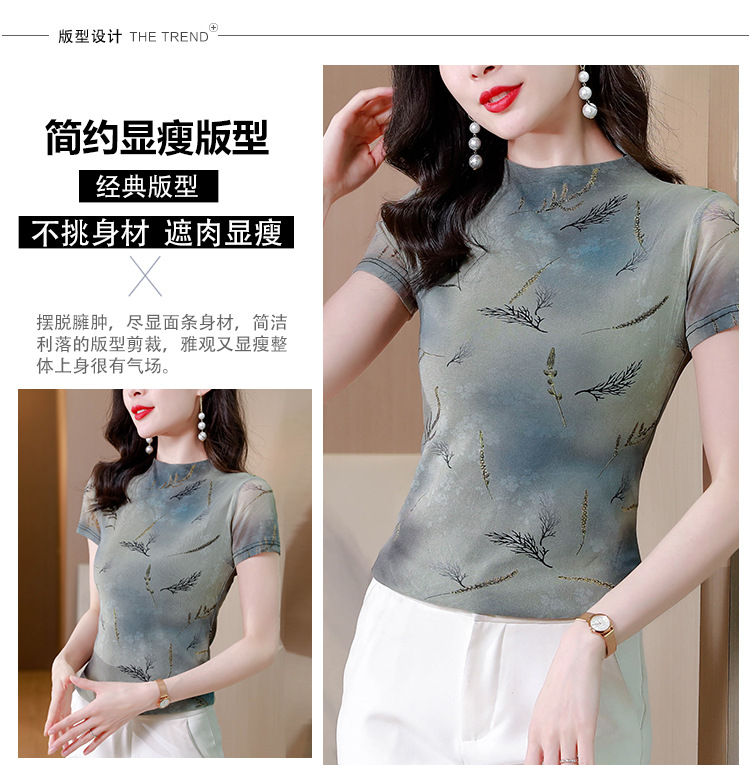 大码网纱双层打底衫百搭t恤上衣KQL-520N9883