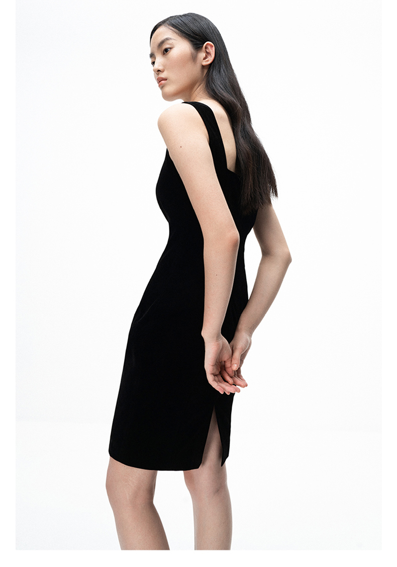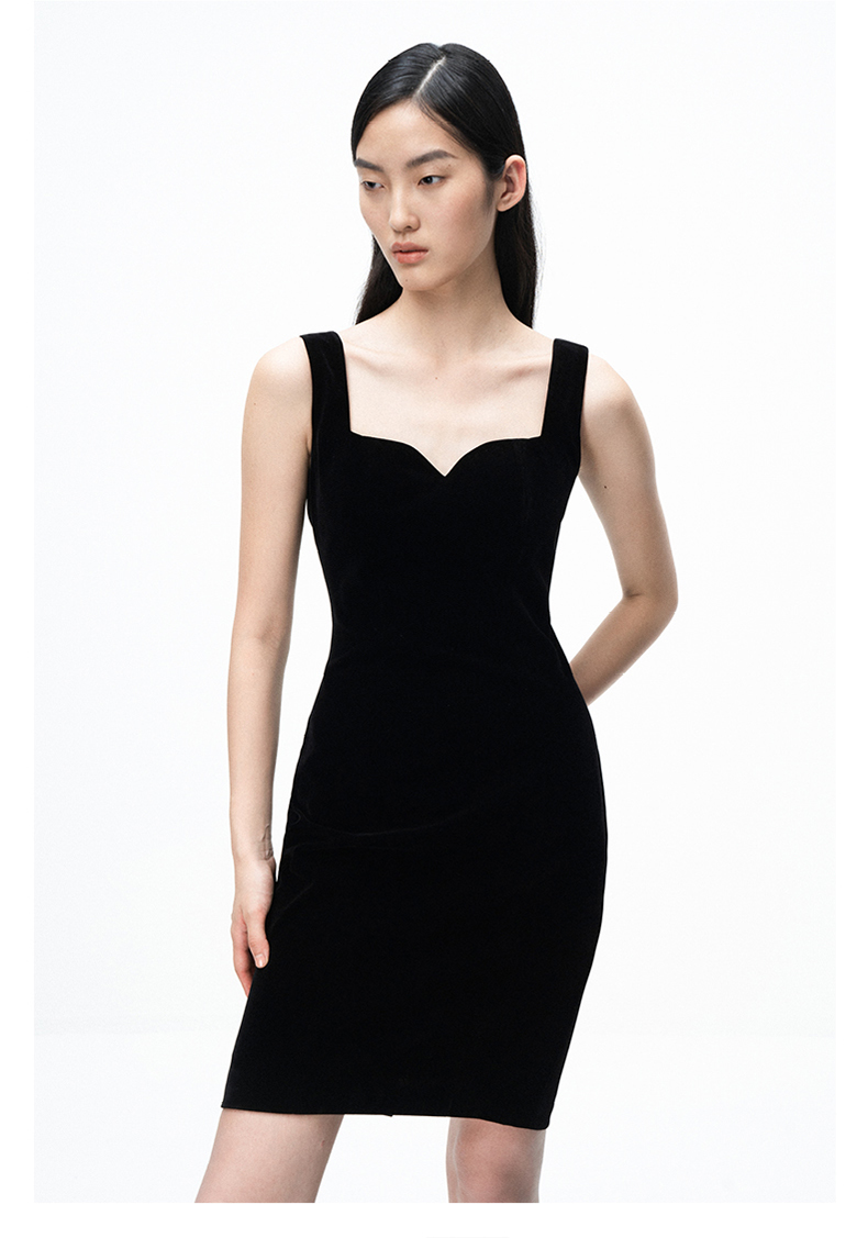 AtelierMissLu /Yvonne-墨黑丝绒修身吊带裙