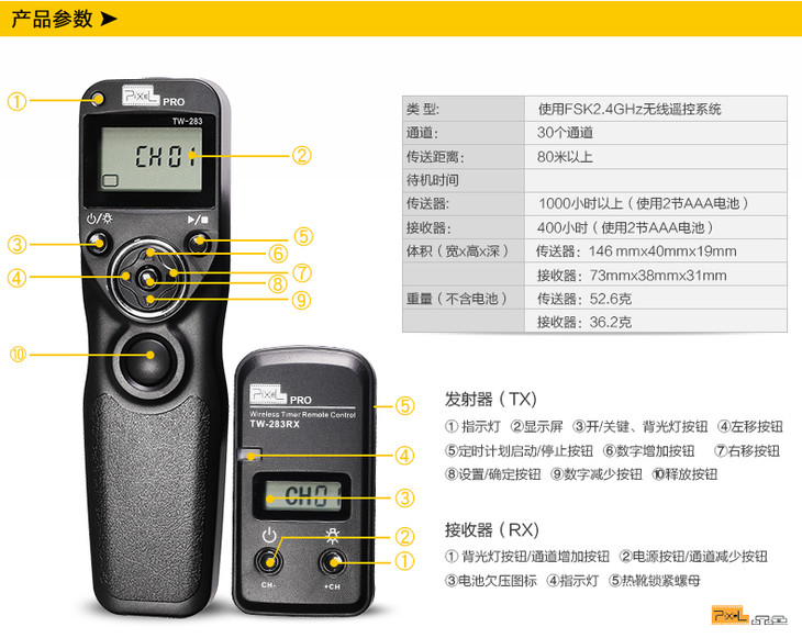 品色TW-283 尼康D800 D750 D610 D90 D7100 无线定时快门线遥控器单反相机D7200 D810 D500 D850 D5延时摄影