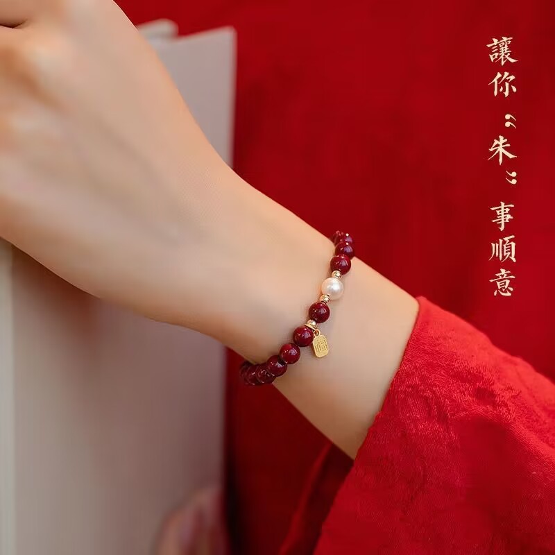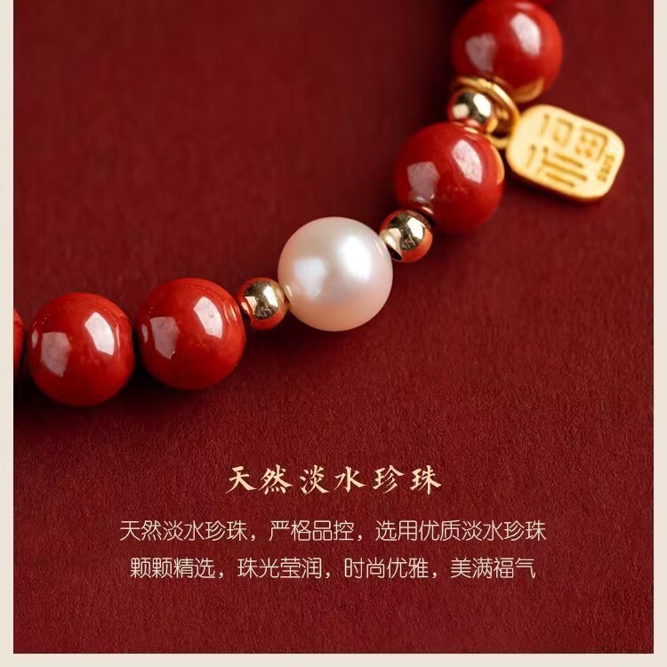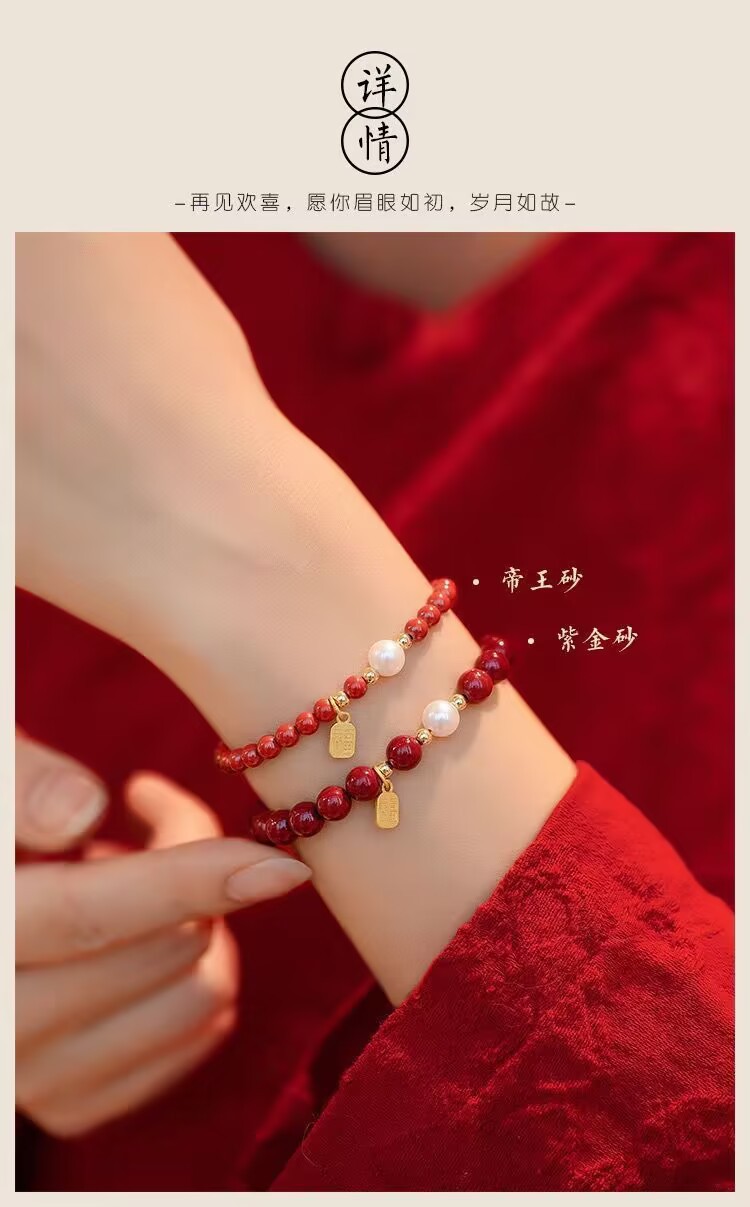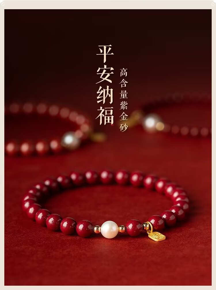 【朱砂手链】平安珍珠福牌转运珠 紫金砂帝王砂 本命年送闺蜜女母亲礼物