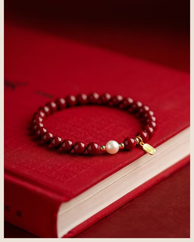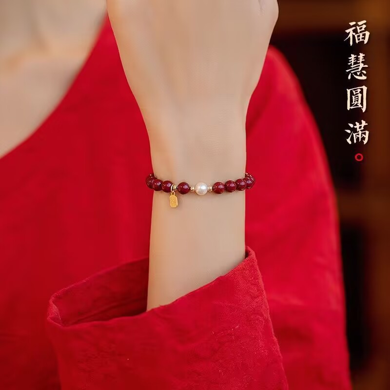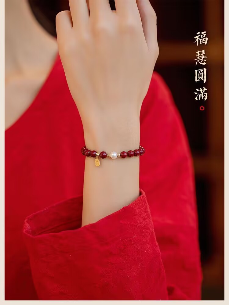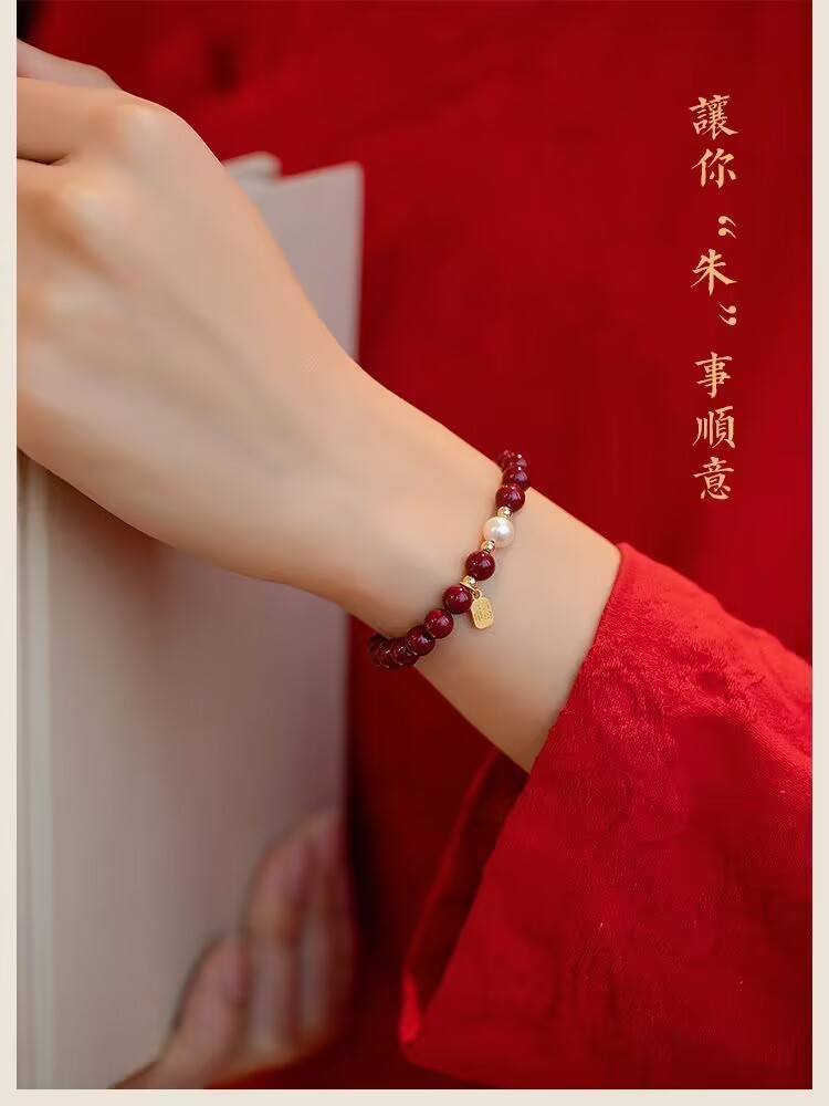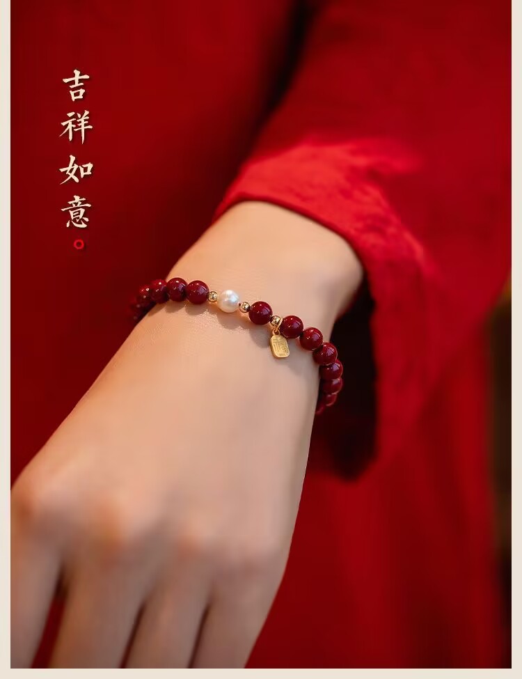 【朱砂手链】平安珍珠福牌转运珠 紫金砂帝王砂 本命年送闺蜜女母亲礼物