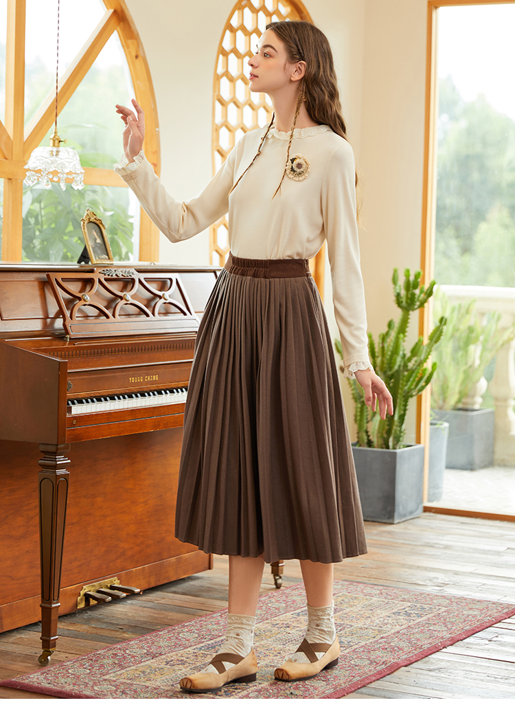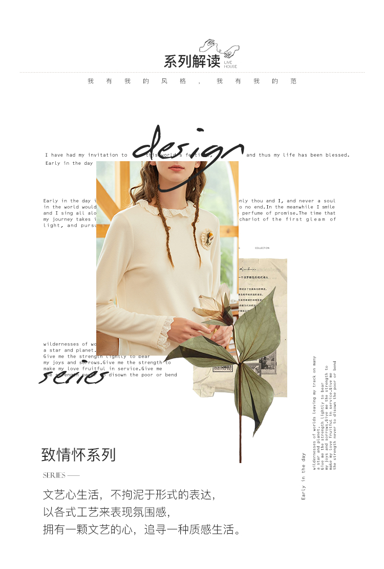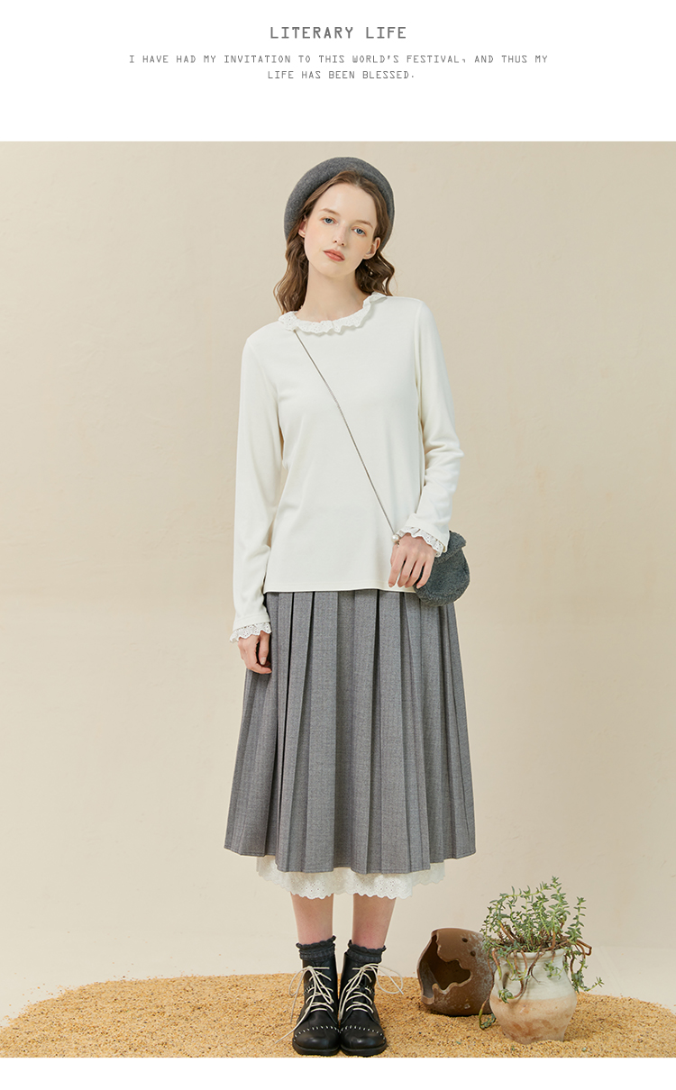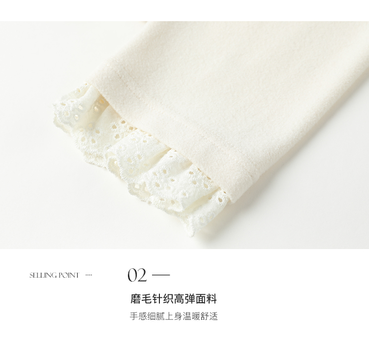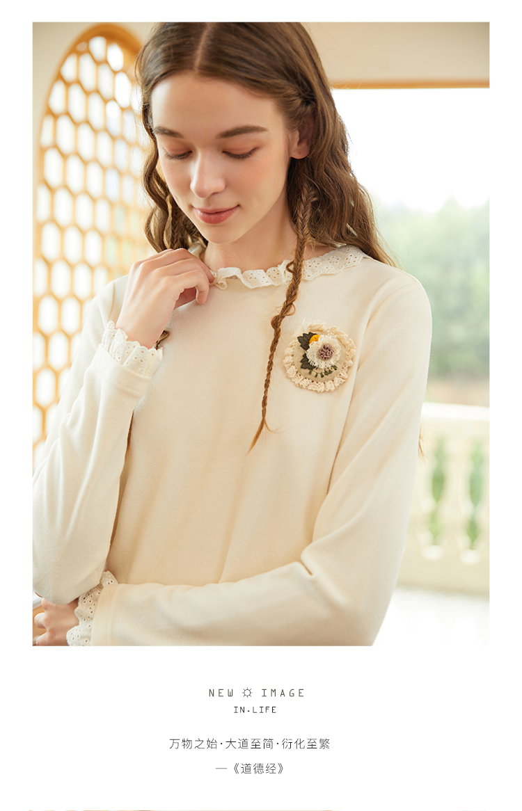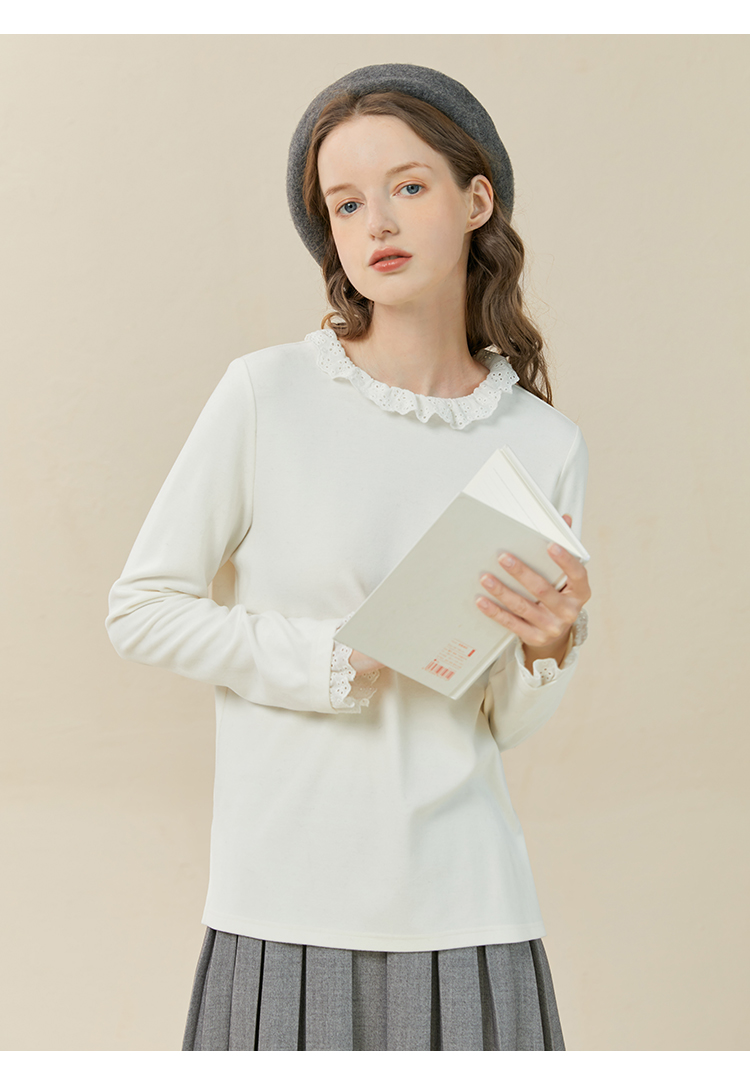 famecoco范可儿原创设计高弹花边t恤女纯色磨毛打底衫F228BB010